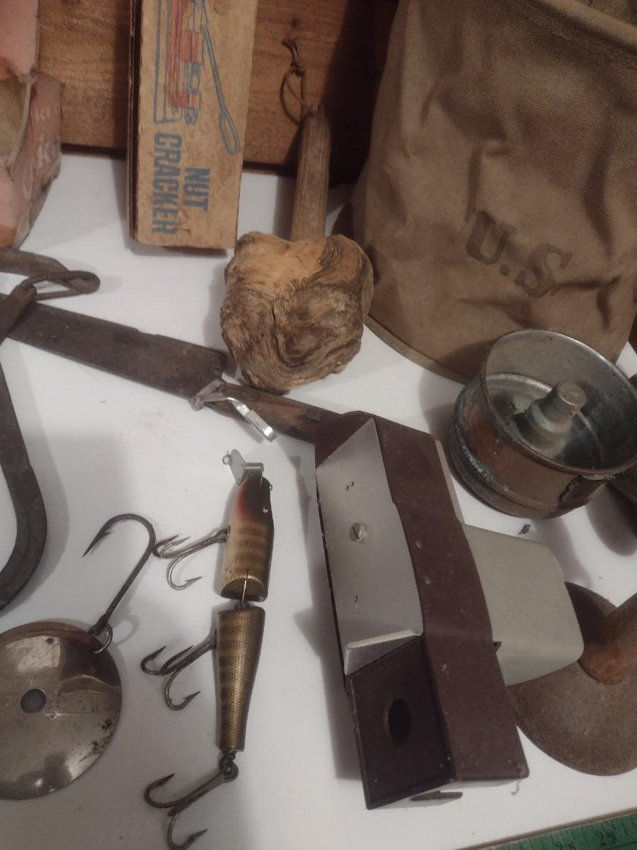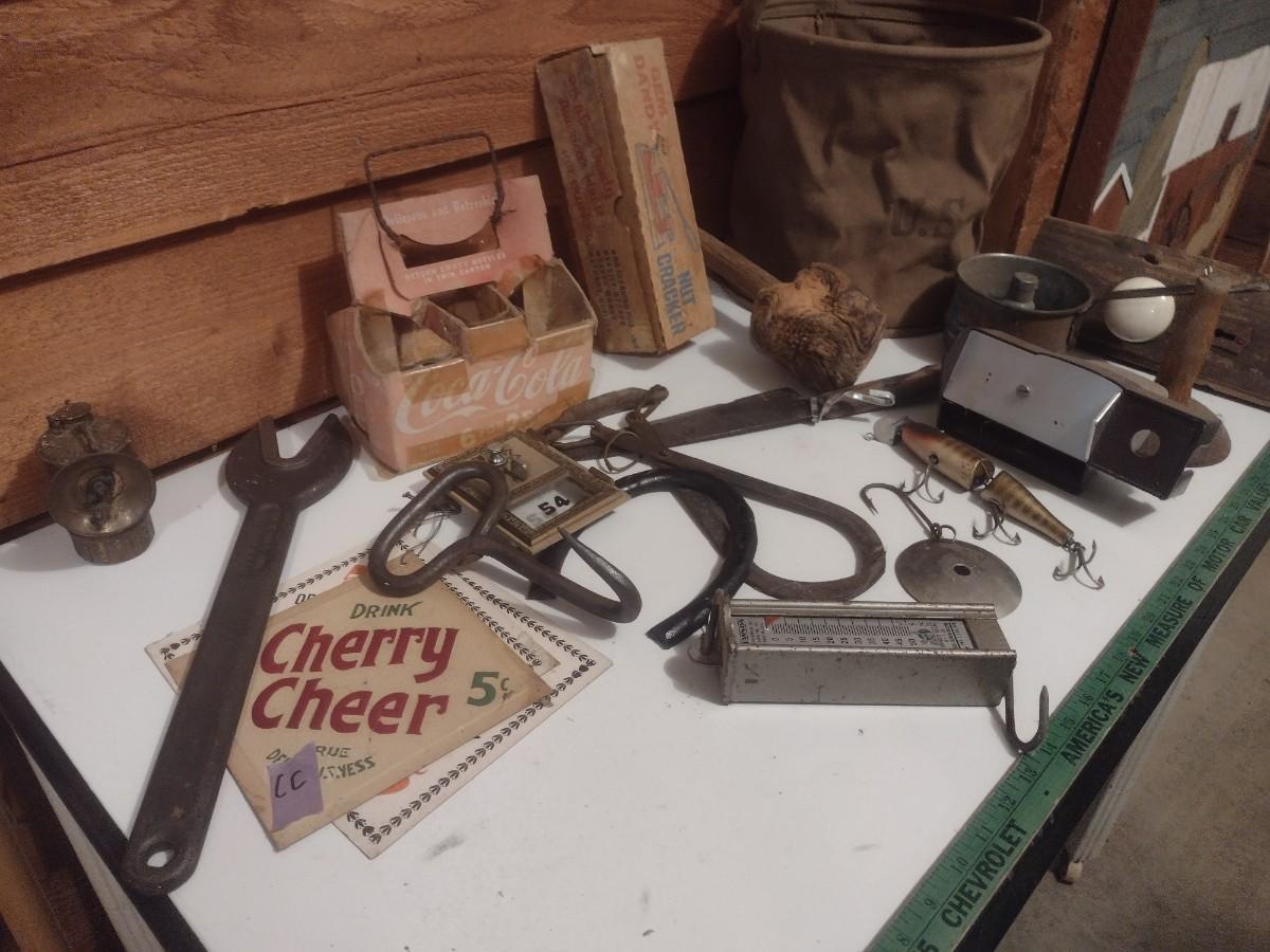 Collection of Primitive and Vintage Collectible Rustic and Farmhouse Items Choice G (Table Not Included)