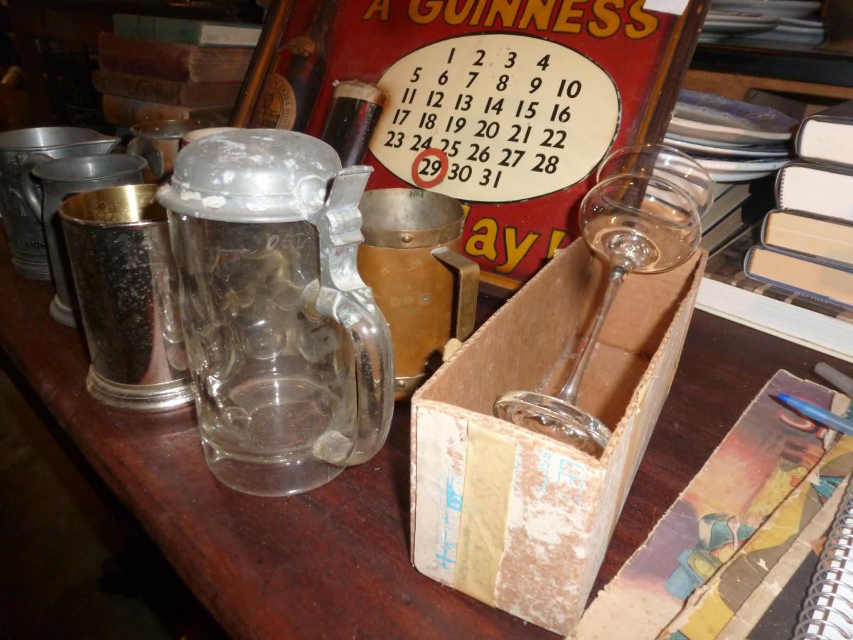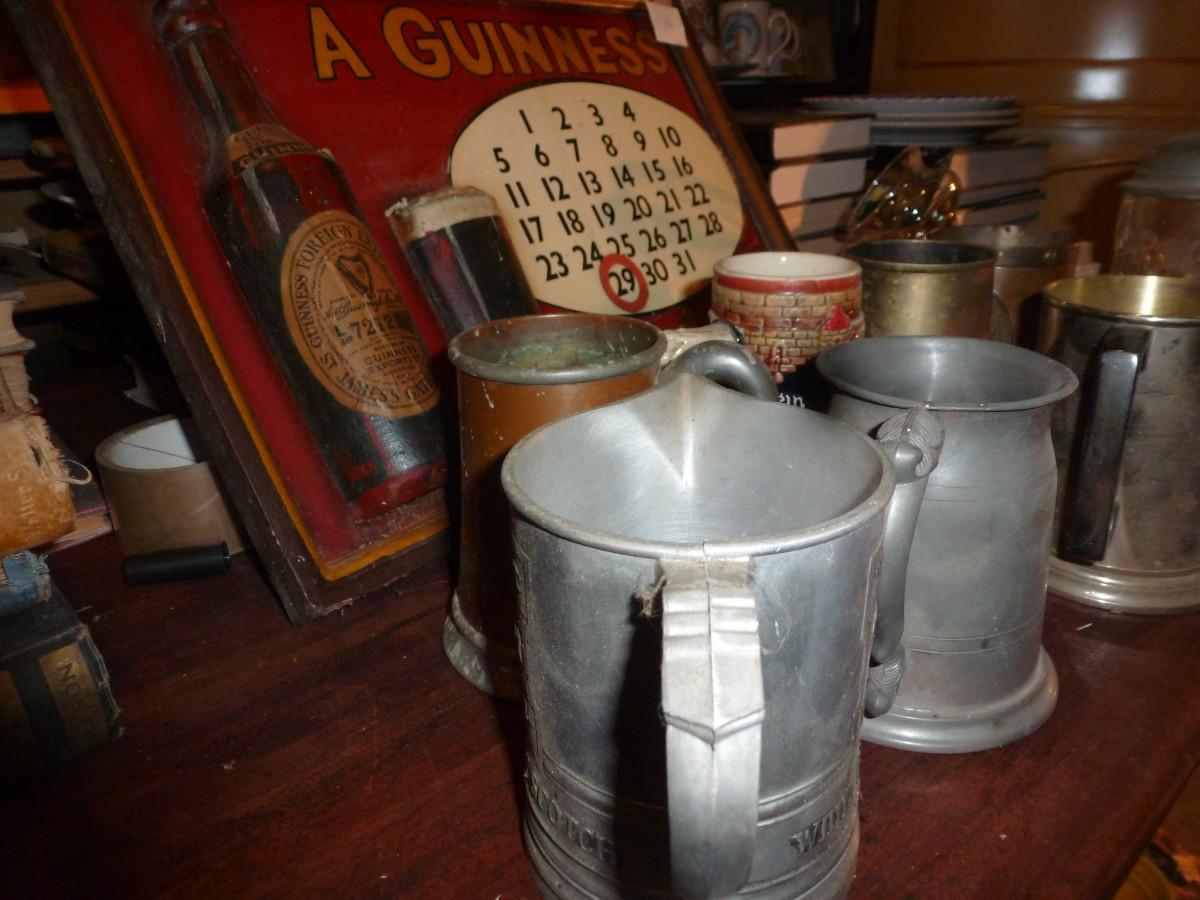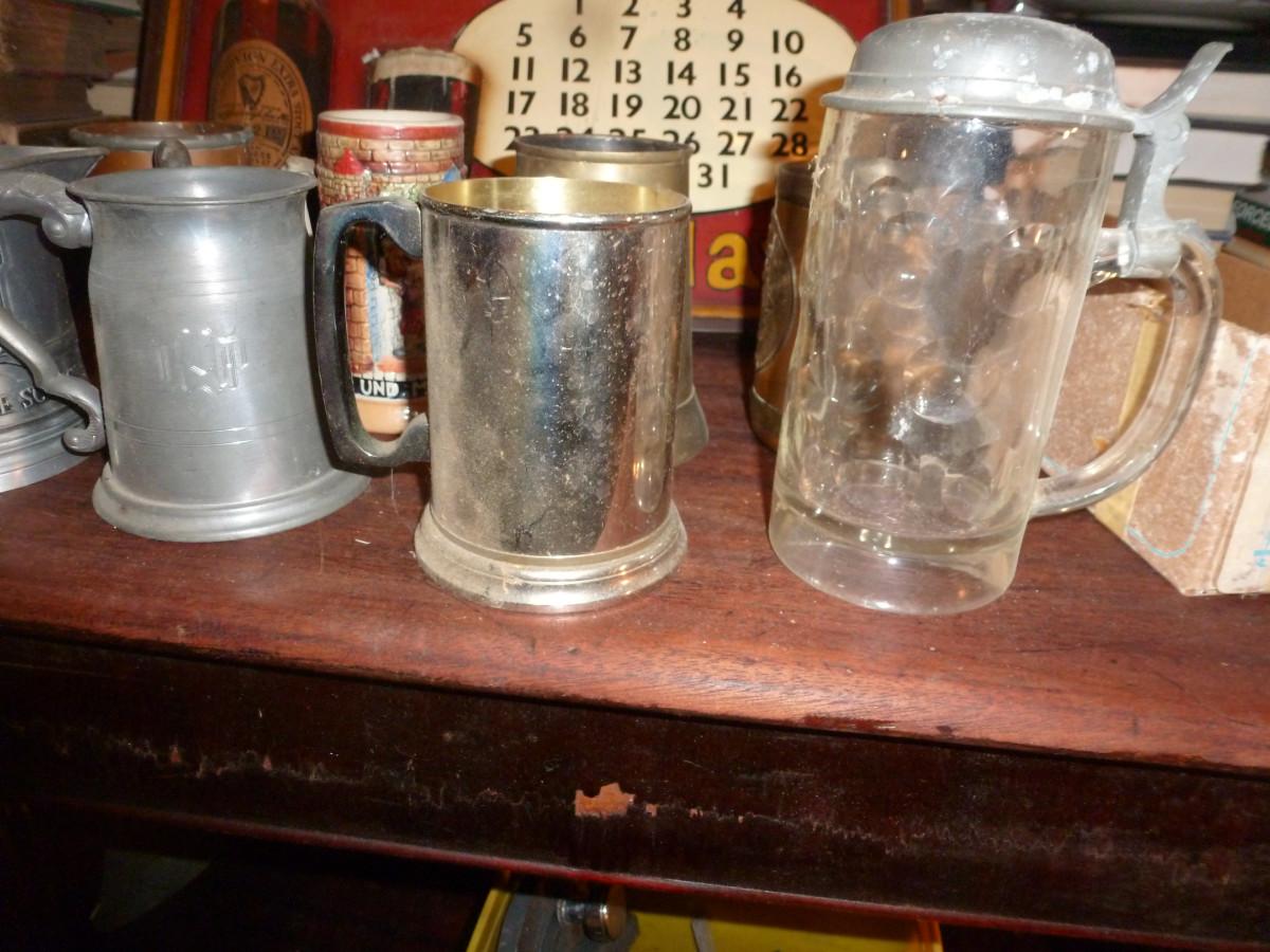 Collection of Pub Ware and Decor. Guiness sign, 8 beer mugs, 1 glass.