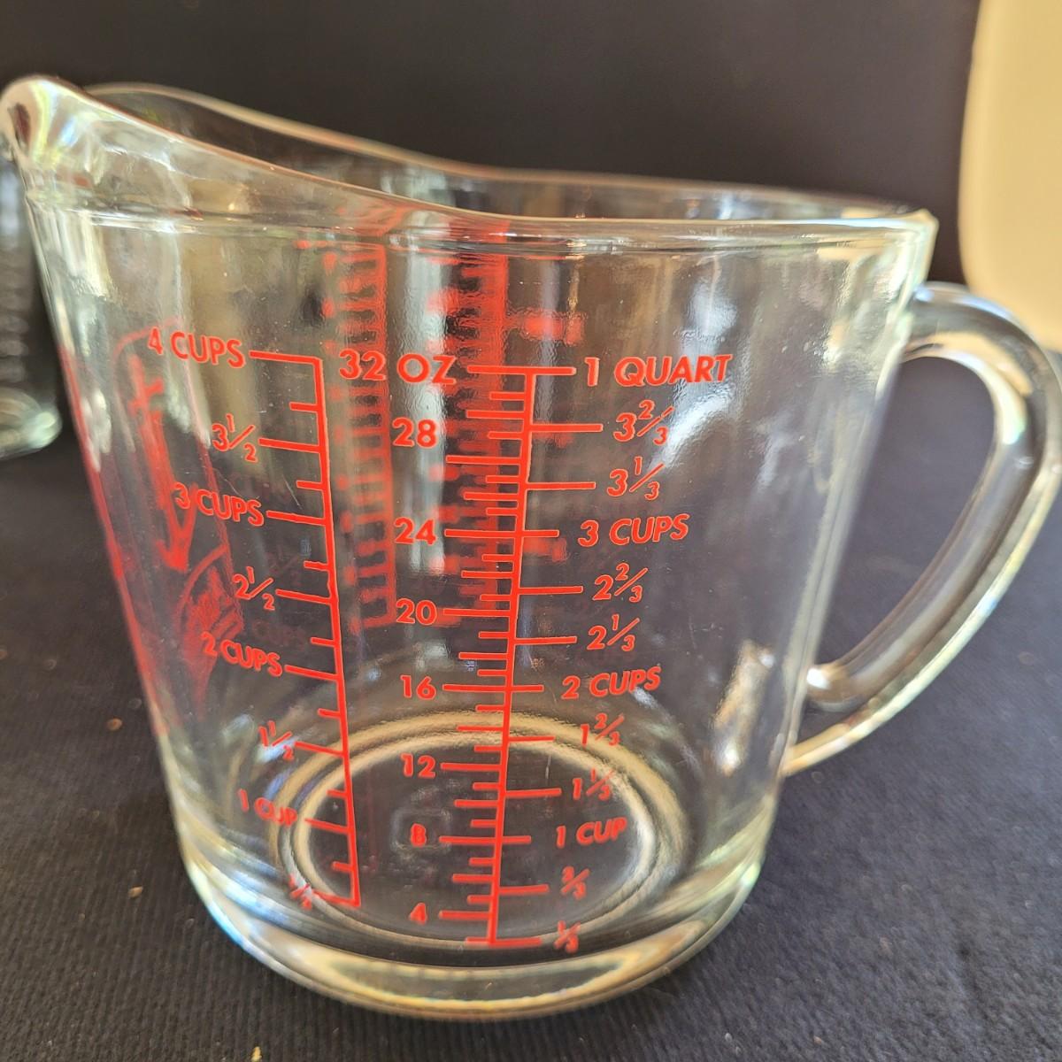 Glass measuring cups ranging in size from 1 cup to 8 cups. Shipping available.