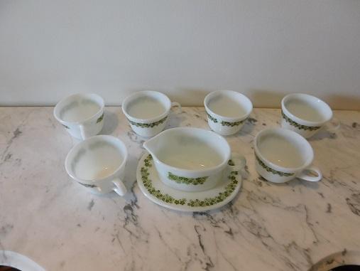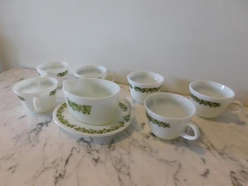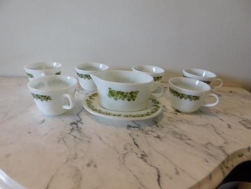 Collection of Pyrex Coffee Mugs and Creamer Boat