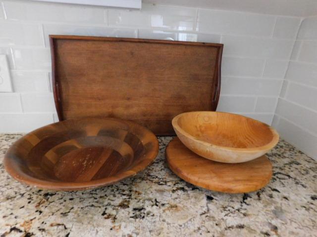 Collection of Quality Kitchen Friendly Wood Bowls, Serving Tray, and Lazy Susan
