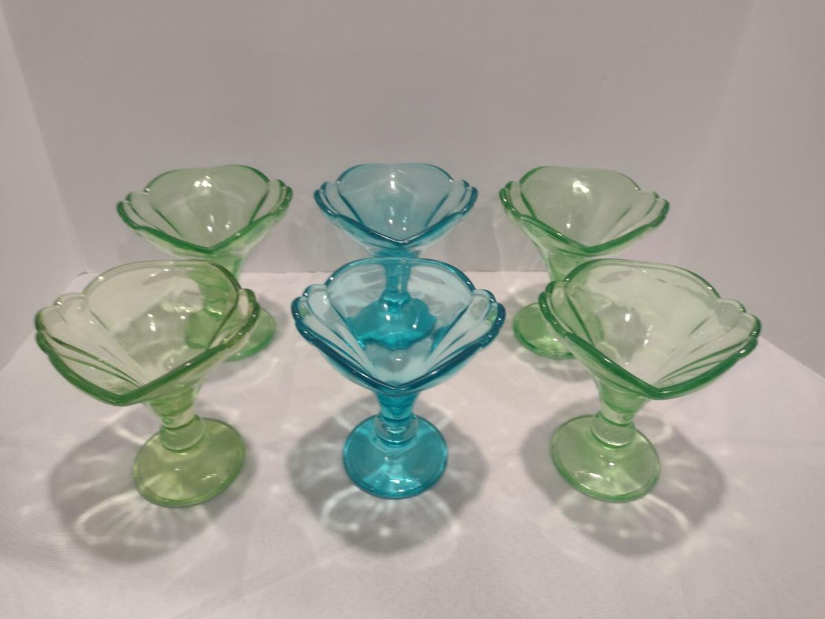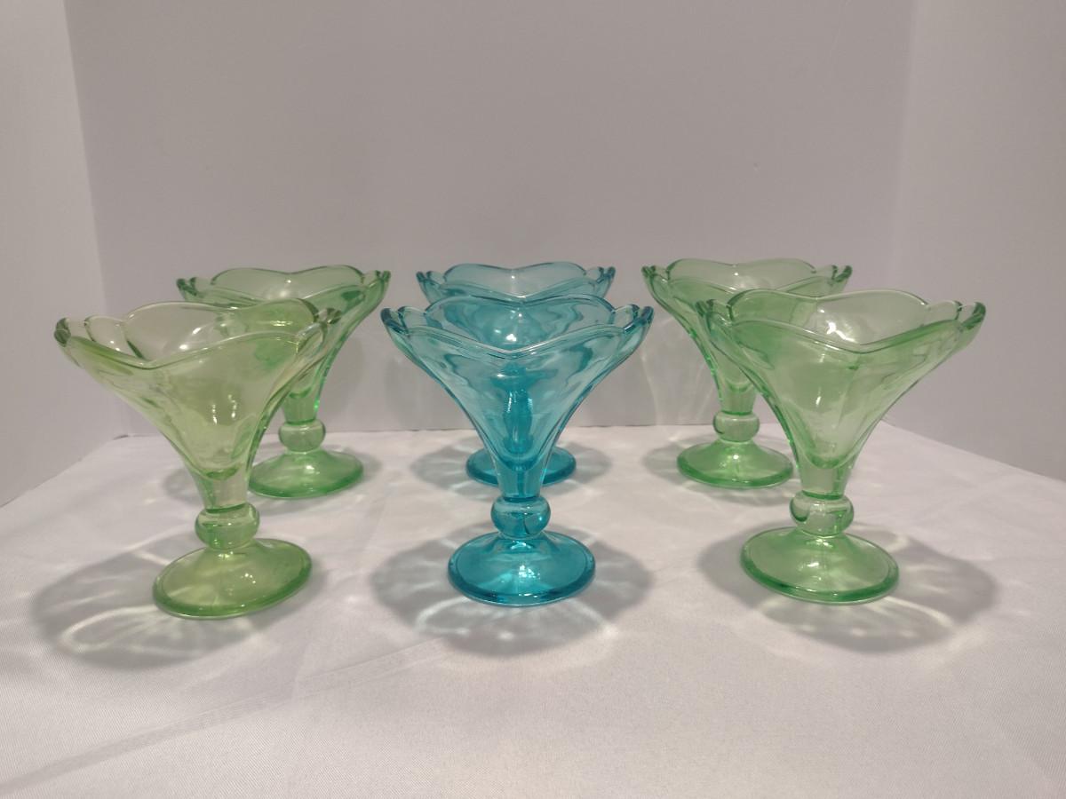 Collection of Rastal Ice Cream/Parfait Glasses- Set of Six. Four green, two blue.