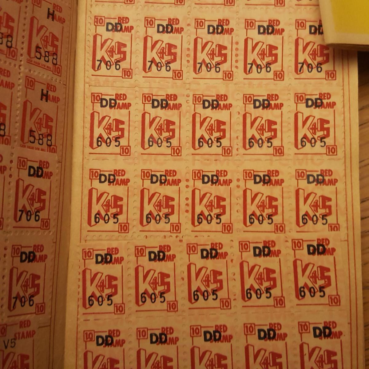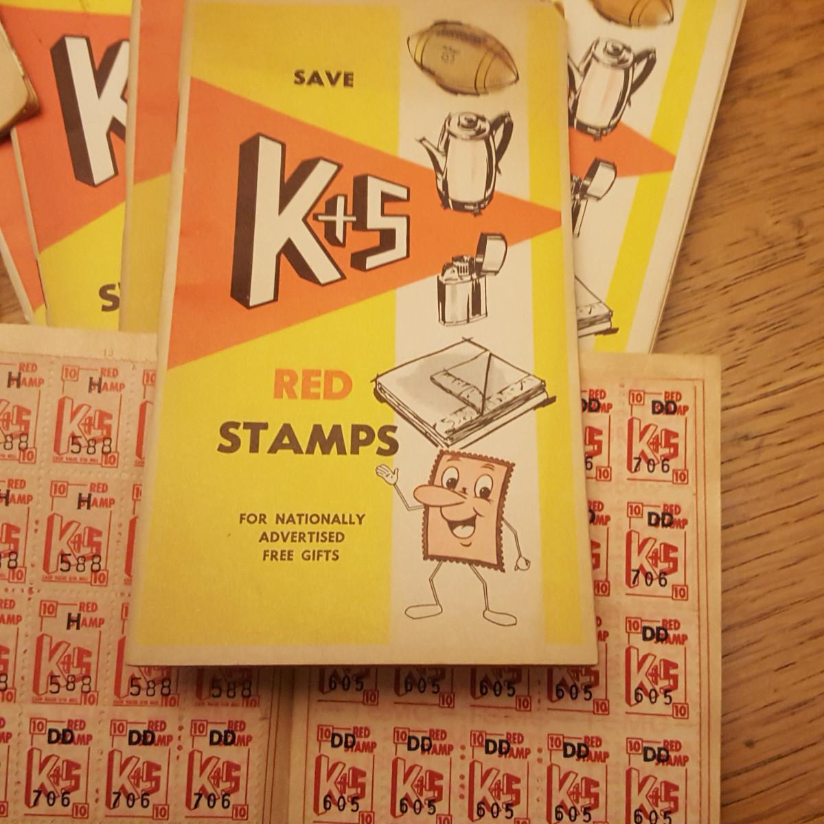 This auction lot is for a Collection of Red & Green Trading Stamps. Trading stamps were the rage in the early 50s through the 70s - many companies jumped on the band wagon. While only a few became major forces in the field there were many players - national, regional and very local. This is a niche offering of 2 Merchants Brand Green Stamps, 1 Greenbax Stamp Company booklet and 8 K & S Red Stamps booklets - all filled or partially filled. They are for the knowledgeable collector.