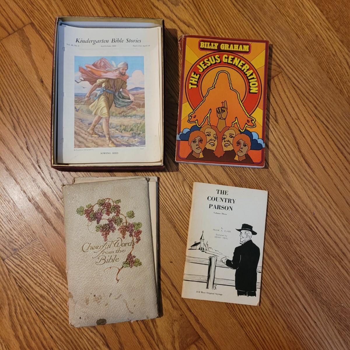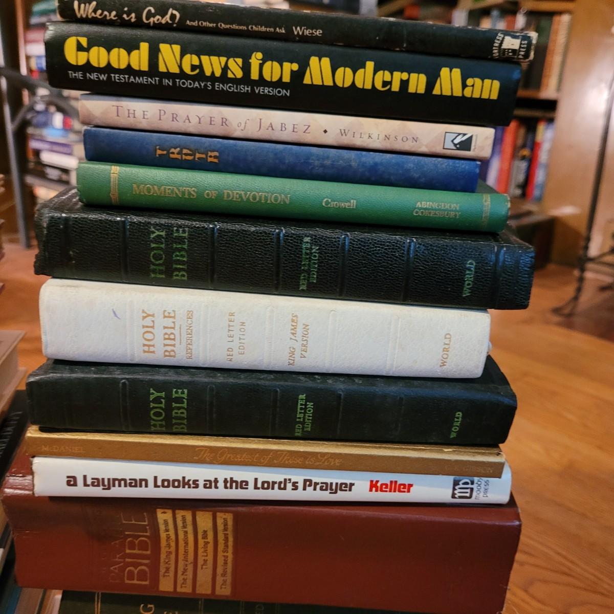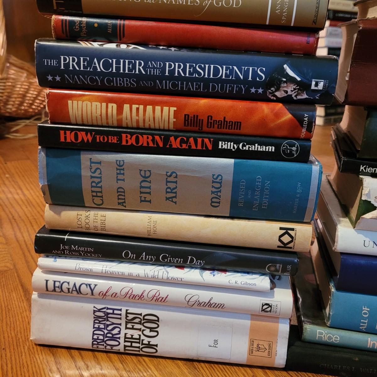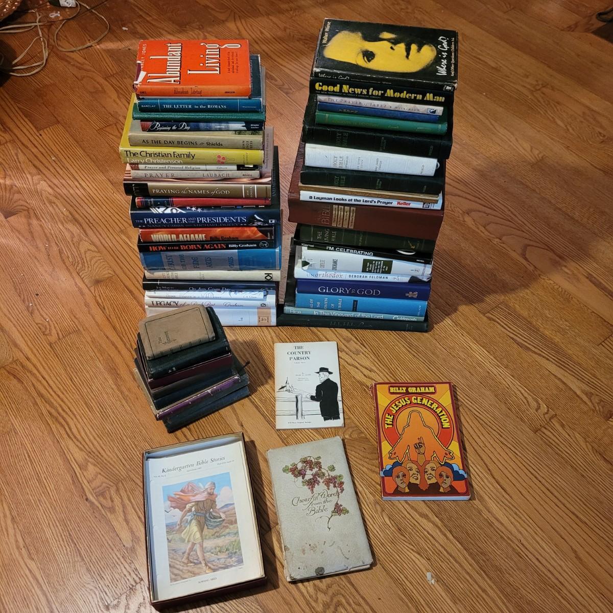 Collection of religious books, readings and bibles, including works by Billy Graham. Mix of hard cover and paperback. Shipping available.