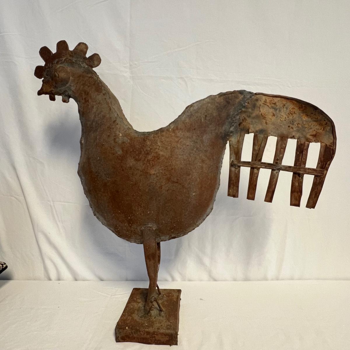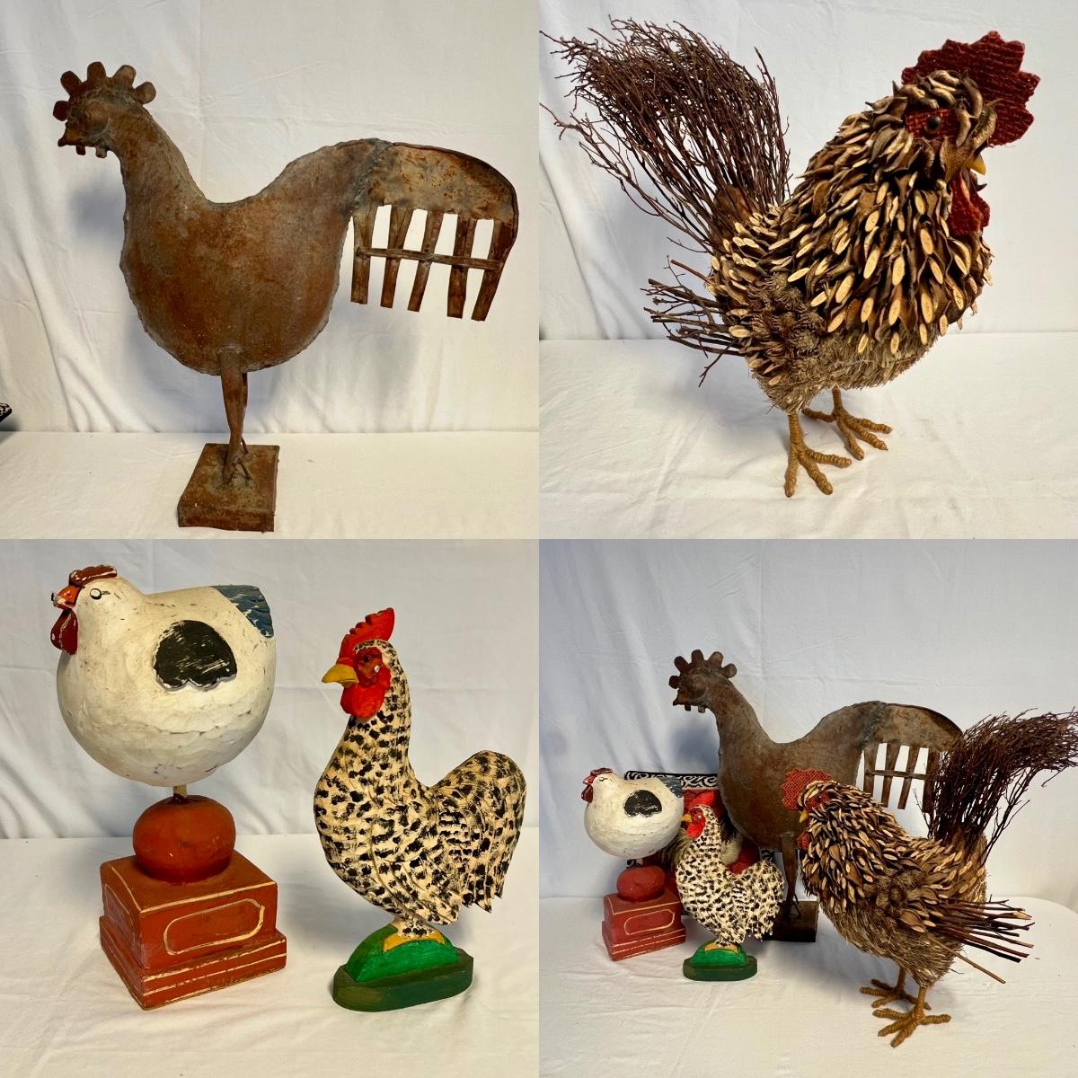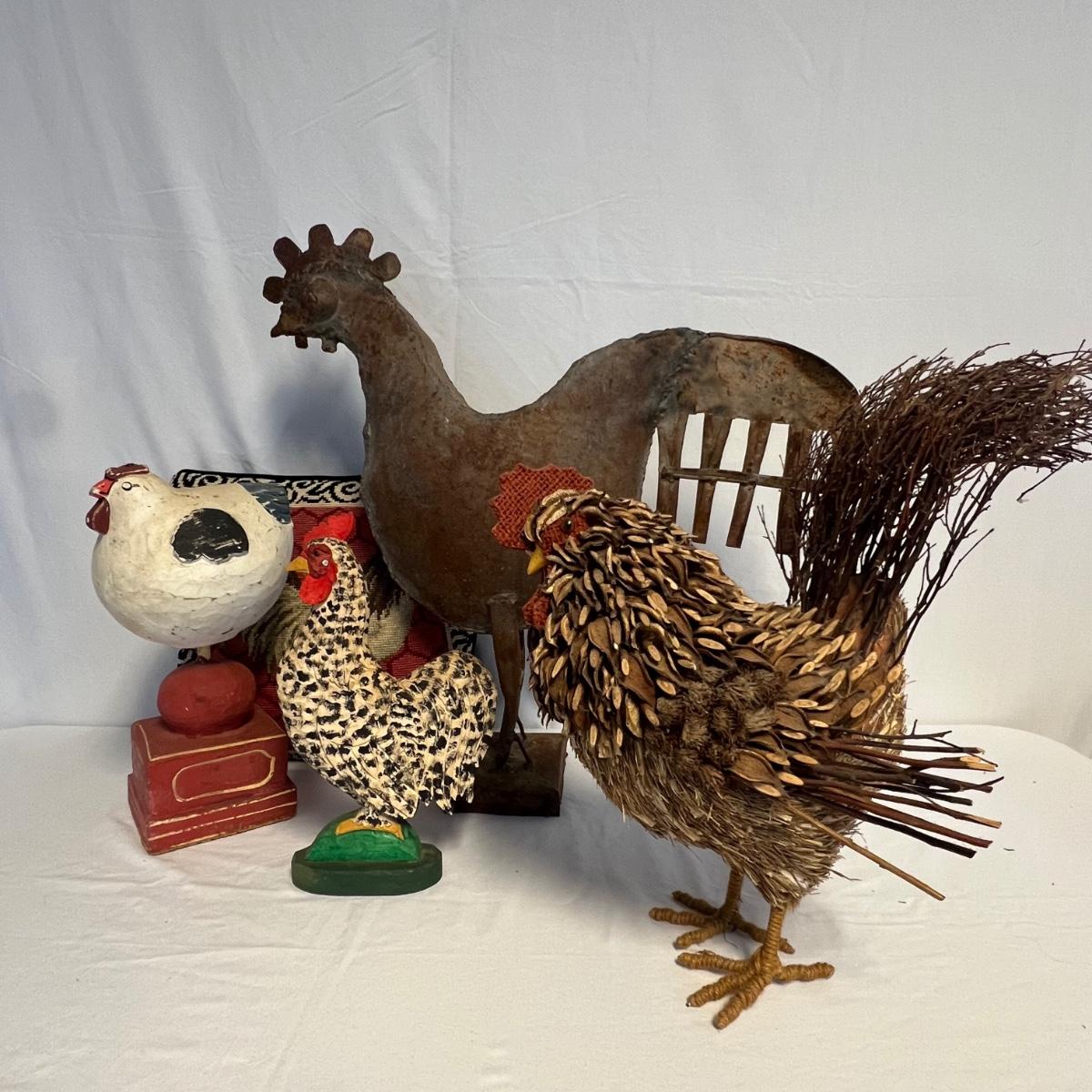 Collection of Roosters Including Signed & Large Patina Iron Statue (S-RG)