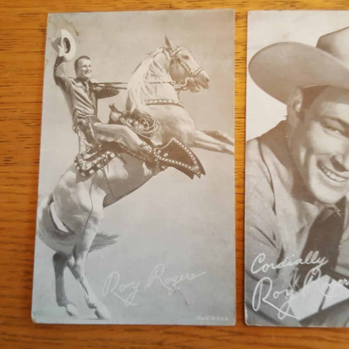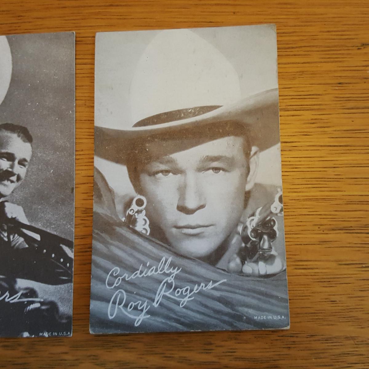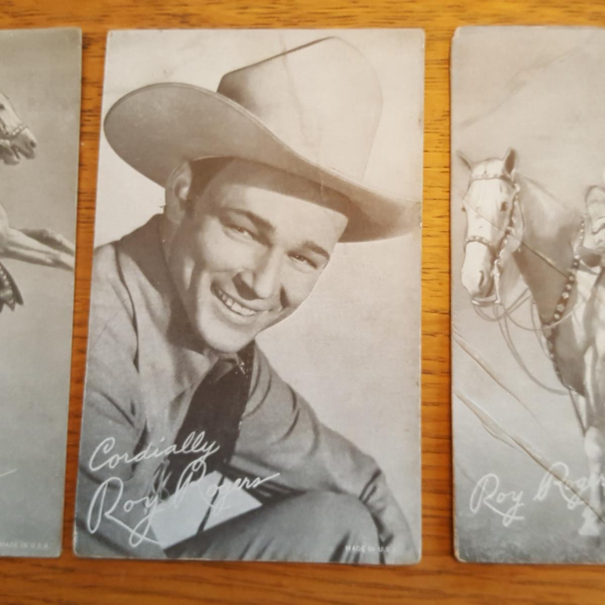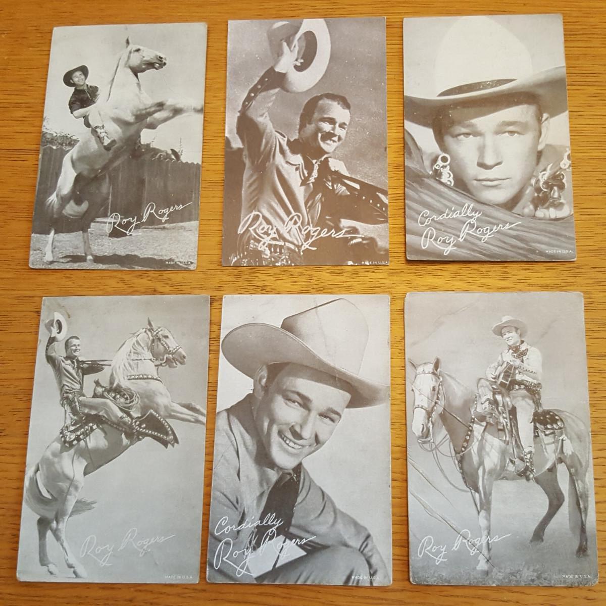 This auction lot is for a collection of Roy Rogers Movie Star Cards - Set #1. This set of 6 cards is printed on heavy stock and are in good condition for their age. Roy Rogers was an American singer, actor, and television host. Following early work under his given name, first as co-founder of the Sons of the Pioneers and then acting, the rebranded Rogers then became one of the most popular Western stars of his era. Known as the "King of the Cowboys", he appeared in over 100 films and numerous radio and television episodes of The Roy Rogers Show.