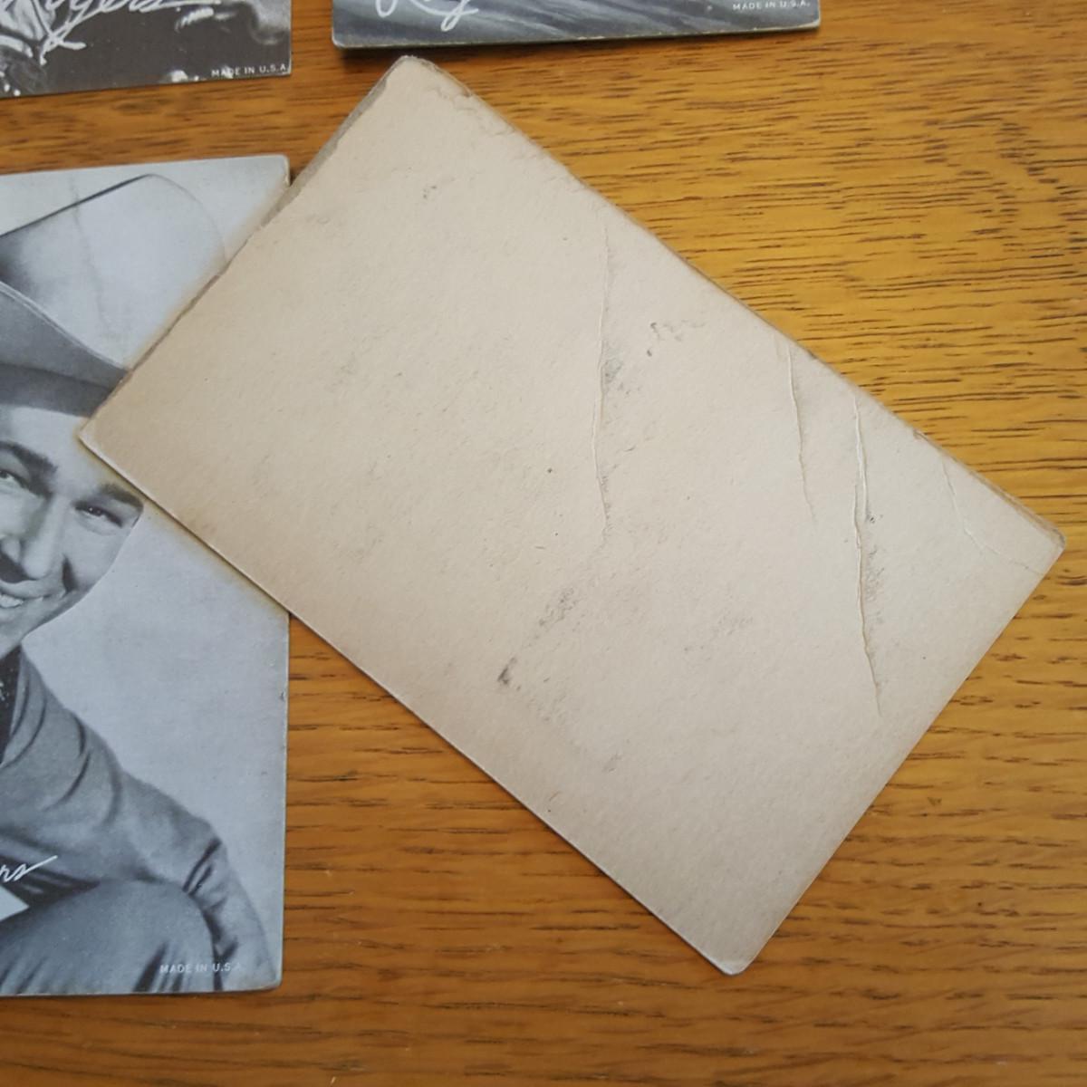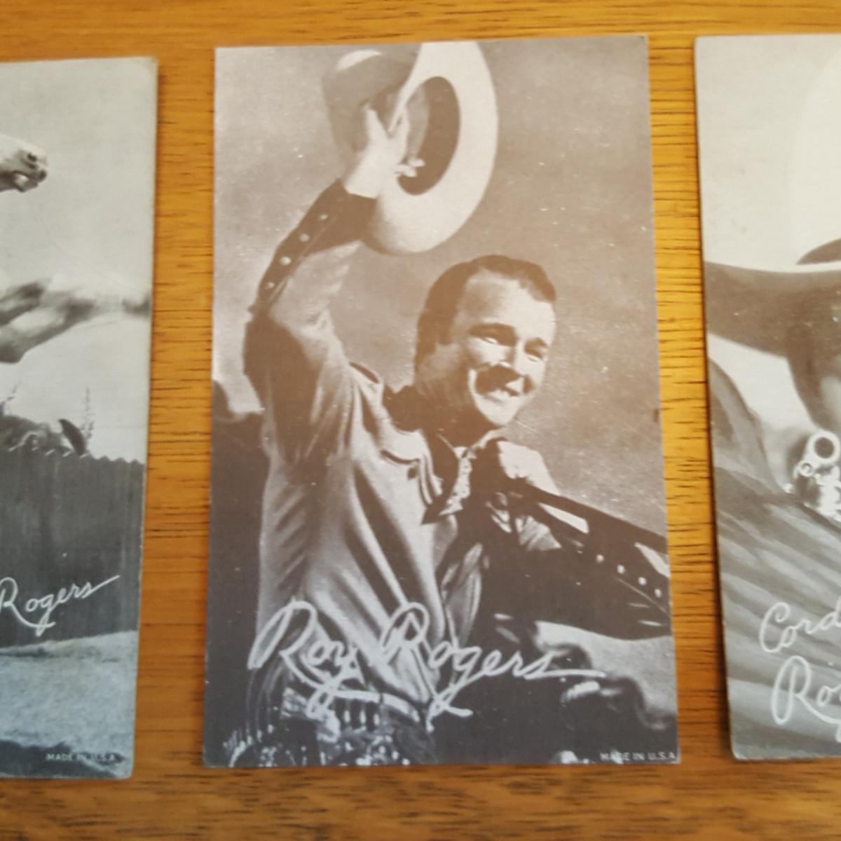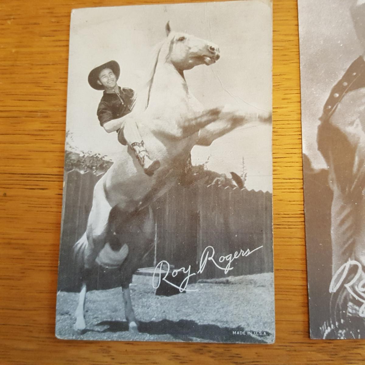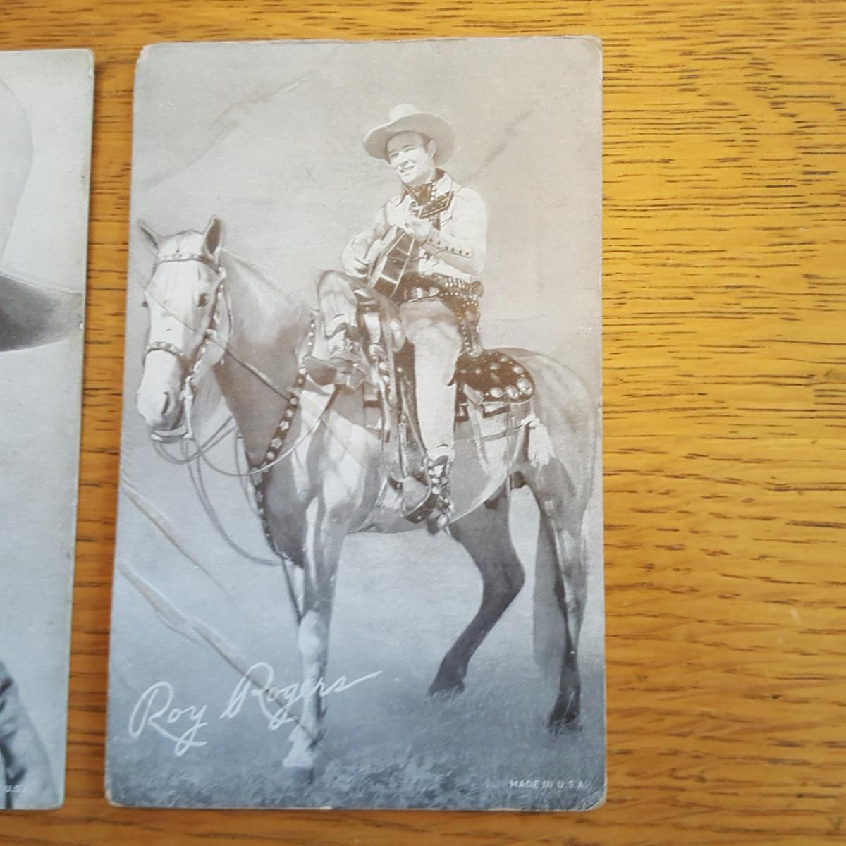 This auction lot is for a collection of Roy Rogers Movie Star Cards - Set #1. This set of 6 cards is printed on heavy stock and are in good condition for their age. Roy Rogers was an American singer, actor, and television host. Following early work under his given name, first as co-founder of the Sons of the Pioneers and then acting, the rebranded Rogers then became one of the most popular Western stars of his era. Known as the "King of the Cowboys", he appeared in over 100 films and numerous radio and television episodes of The Roy Rogers Show.