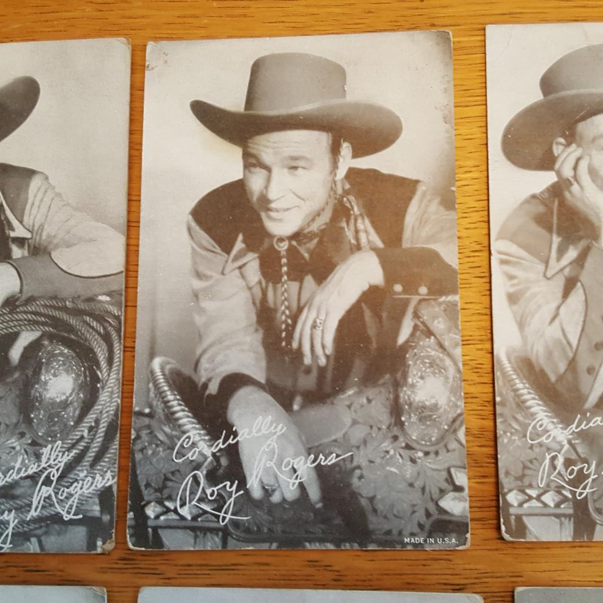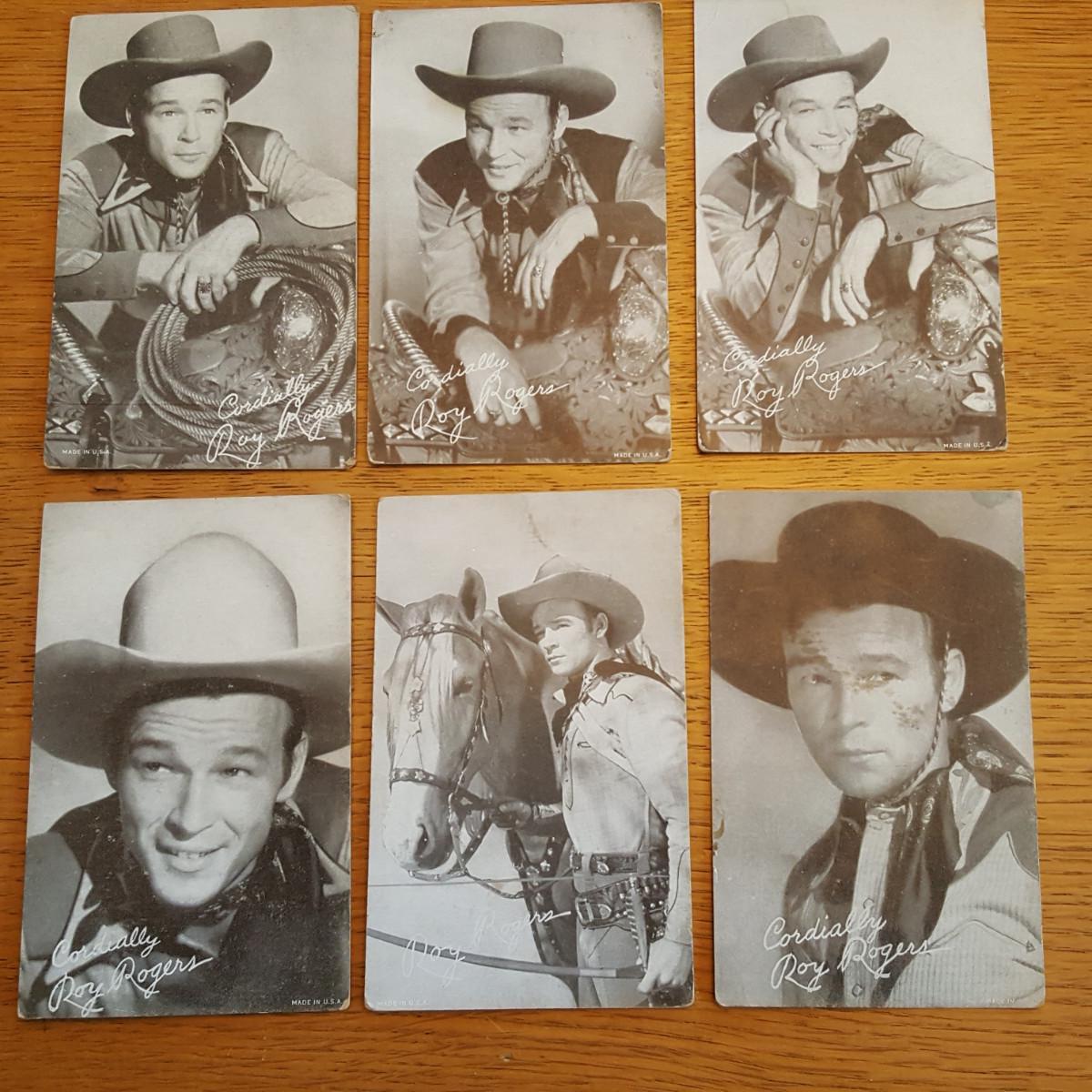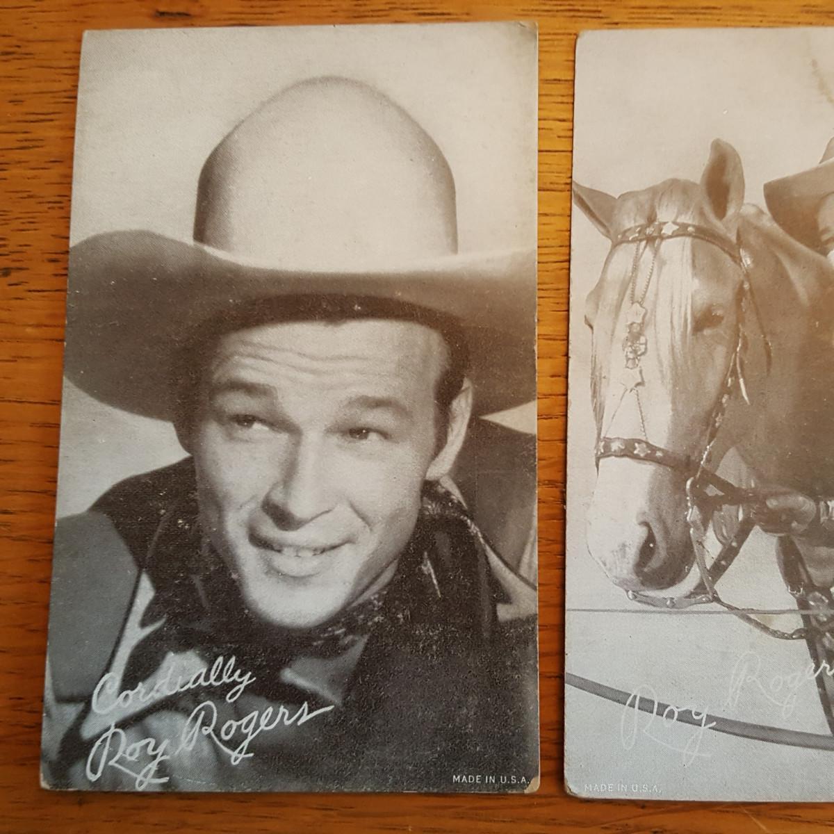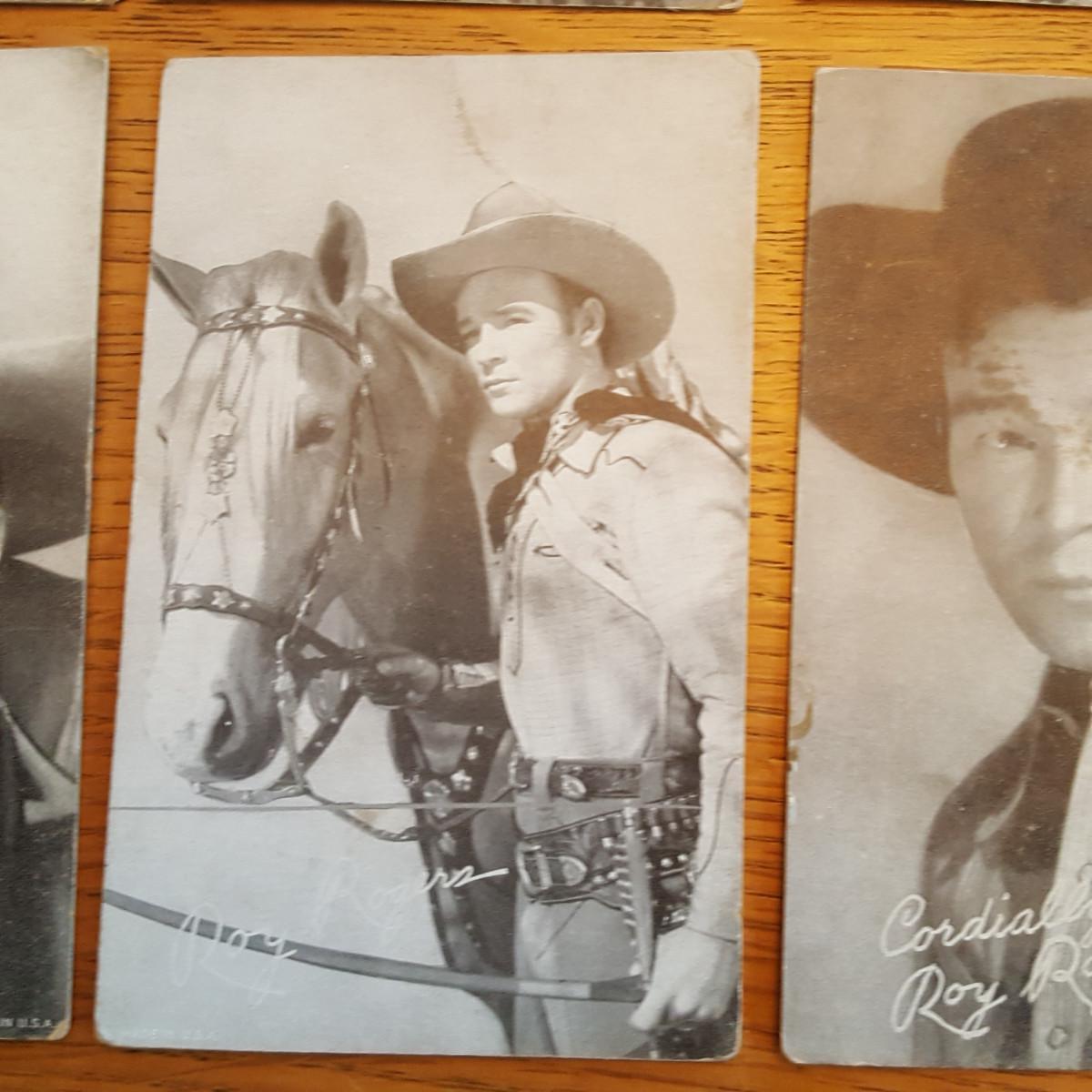 This auction lot is for a Collection of Roy Rogers Movie Star Cards - Set #2. This set of cards is printed on heavy stock paper and are in good condition for their age. There are 6 cards in this collection. Roy Rogers was an American singer, actor, and television host. Following early work under his given name, first as co-founder of the Sons of the Pioneers and then acting, the rebranded Rogers then became one of the most popular Western stars of his era. Known as the "King of the Cowboys", he appeared in over 100 films and numerous radio and television episodes of The Roy Rogers Show.