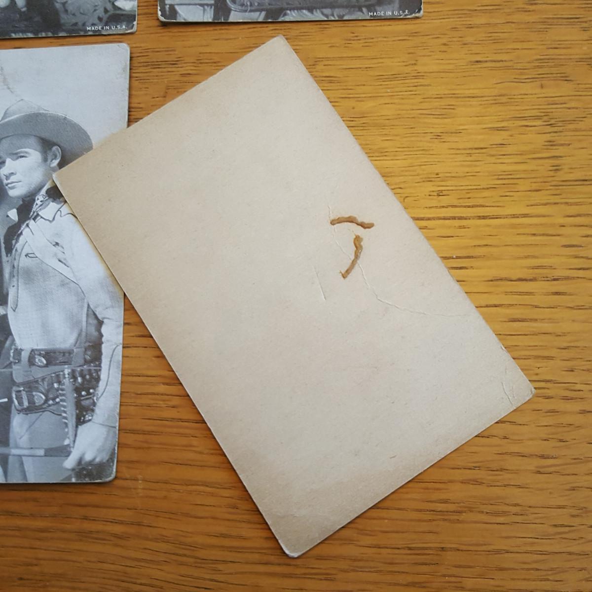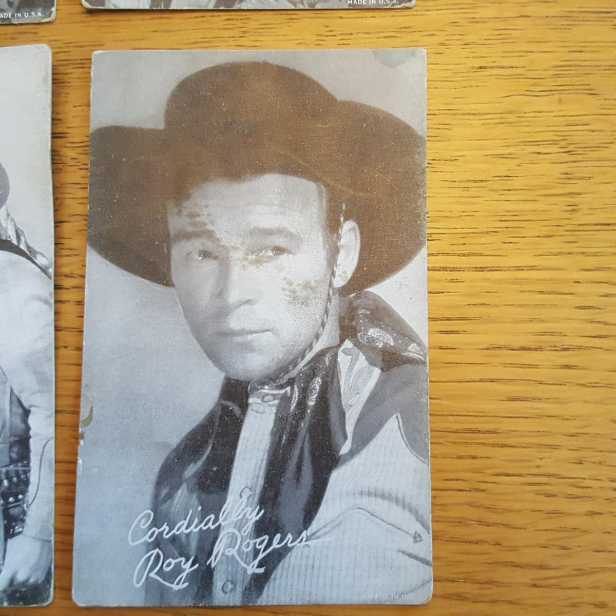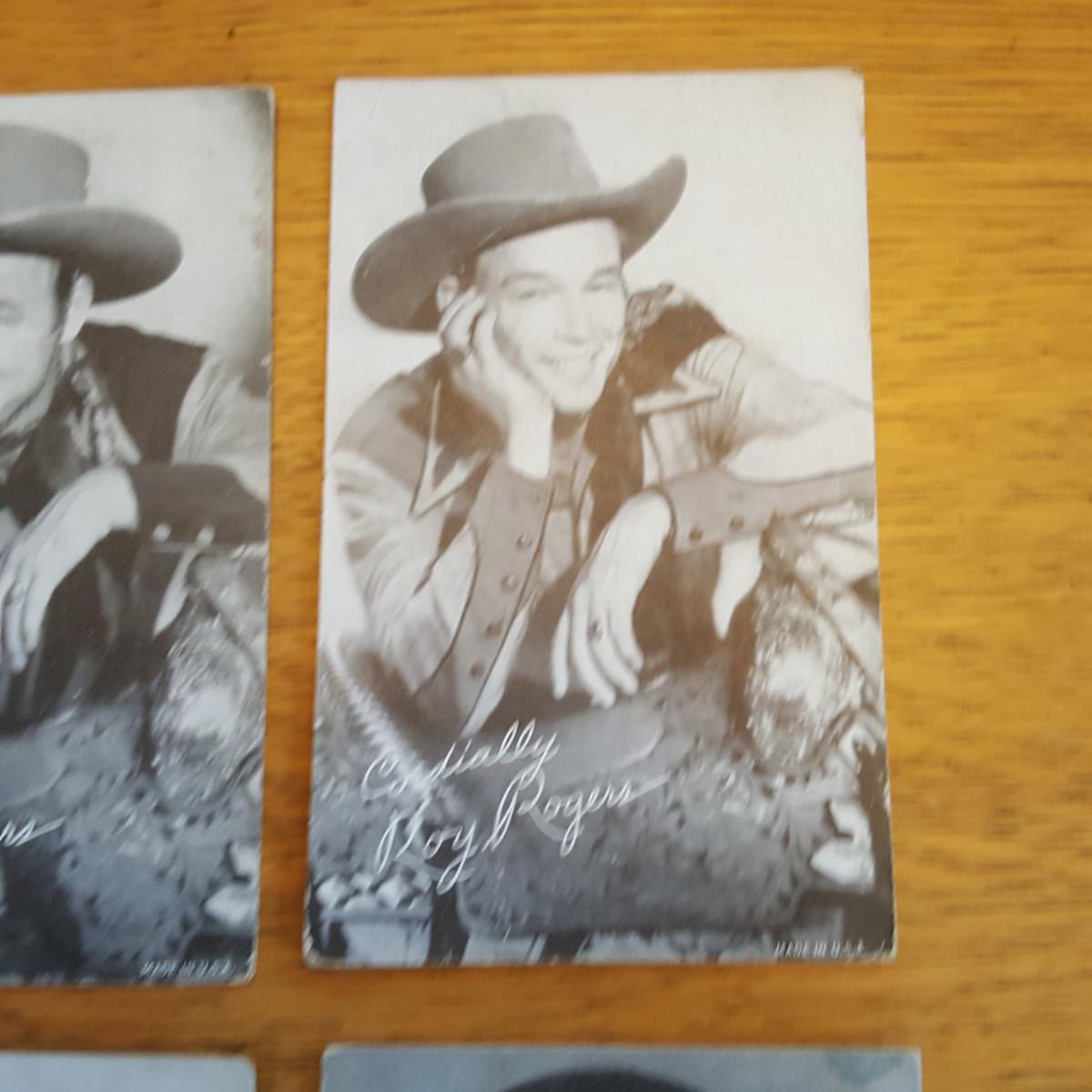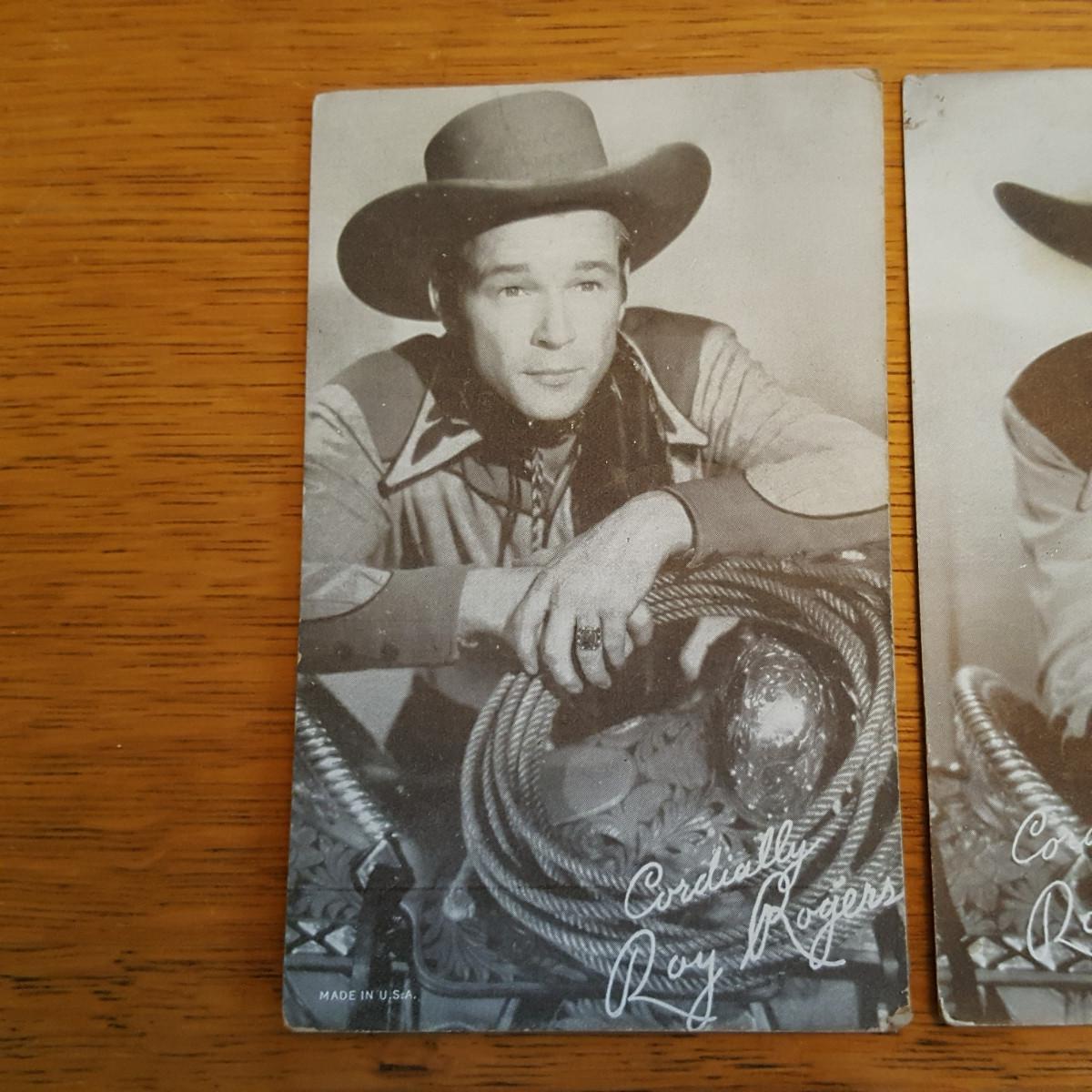 This auction lot is for a Collection of Roy Rogers Movie Star Cards - Set #2. This set of cards is printed on heavy stock paper and are in good condition for their age. There are 6 cards in this collection. Roy Rogers was an American singer, actor, and television host. Following early work under his given name, first as co-founder of the Sons of the Pioneers and then acting, the rebranded Rogers then became one of the most popular Western stars of his era. Known as the "King of the Cowboys", he appeared in over 100 films and numerous radio and television episodes of The Roy Rogers Show.
