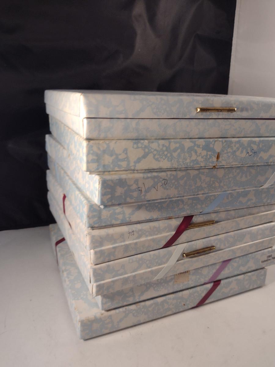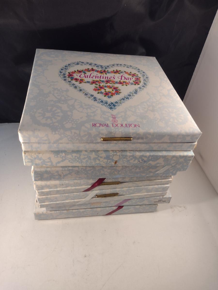 Collection of Royal Doulton Valentine's Day Plates- Eight Pieces. Assorted Years. Original Boxes Included.