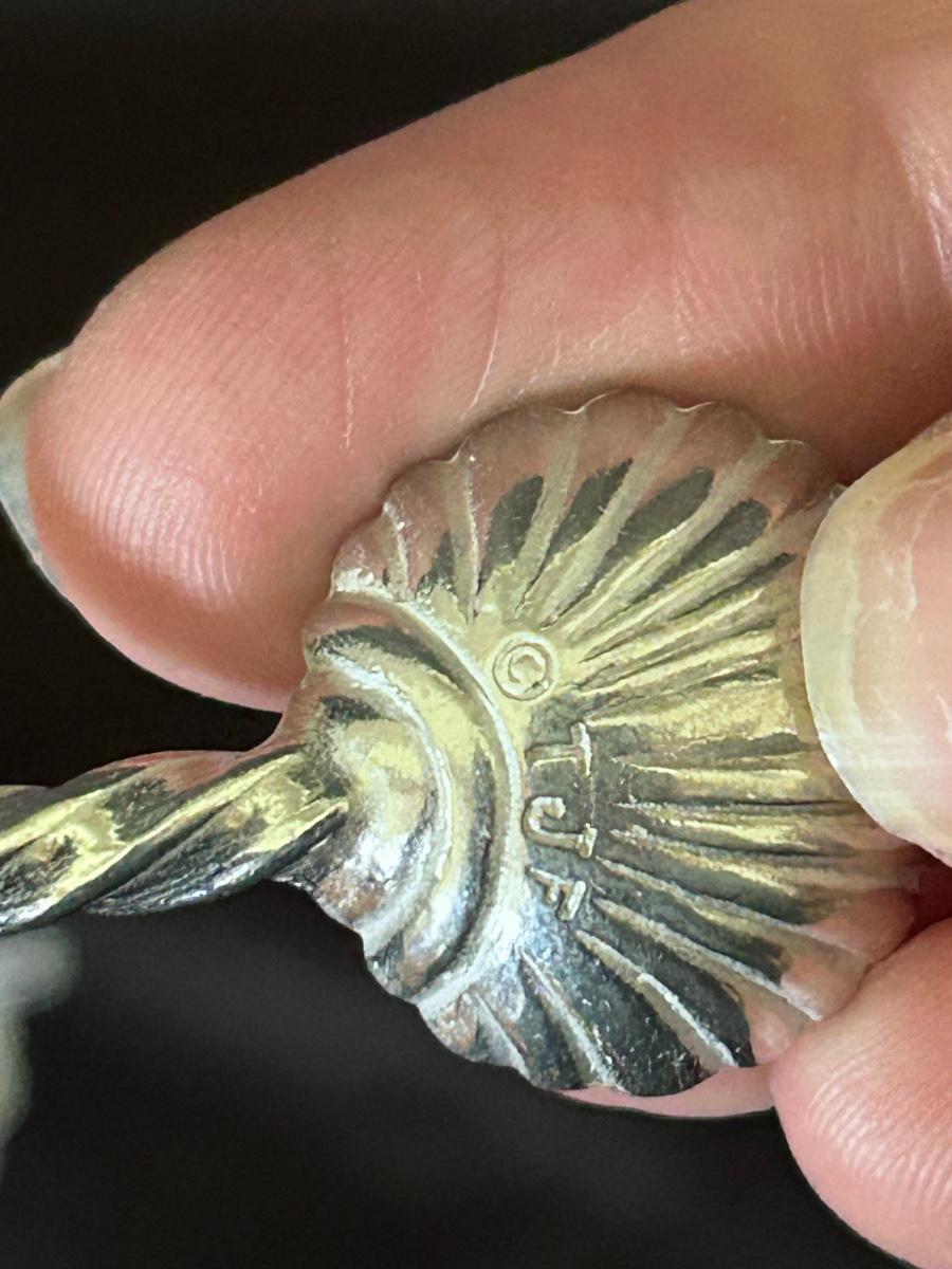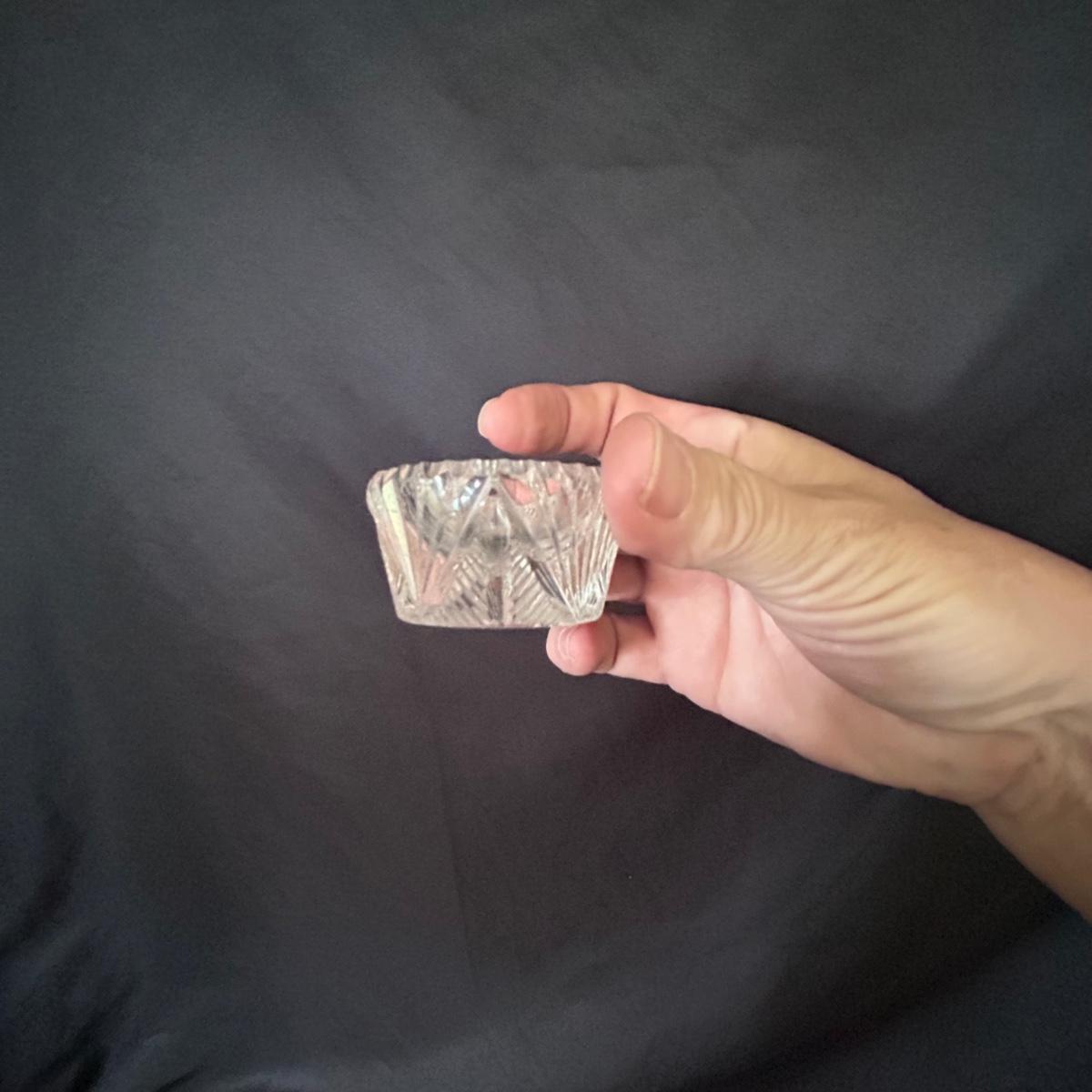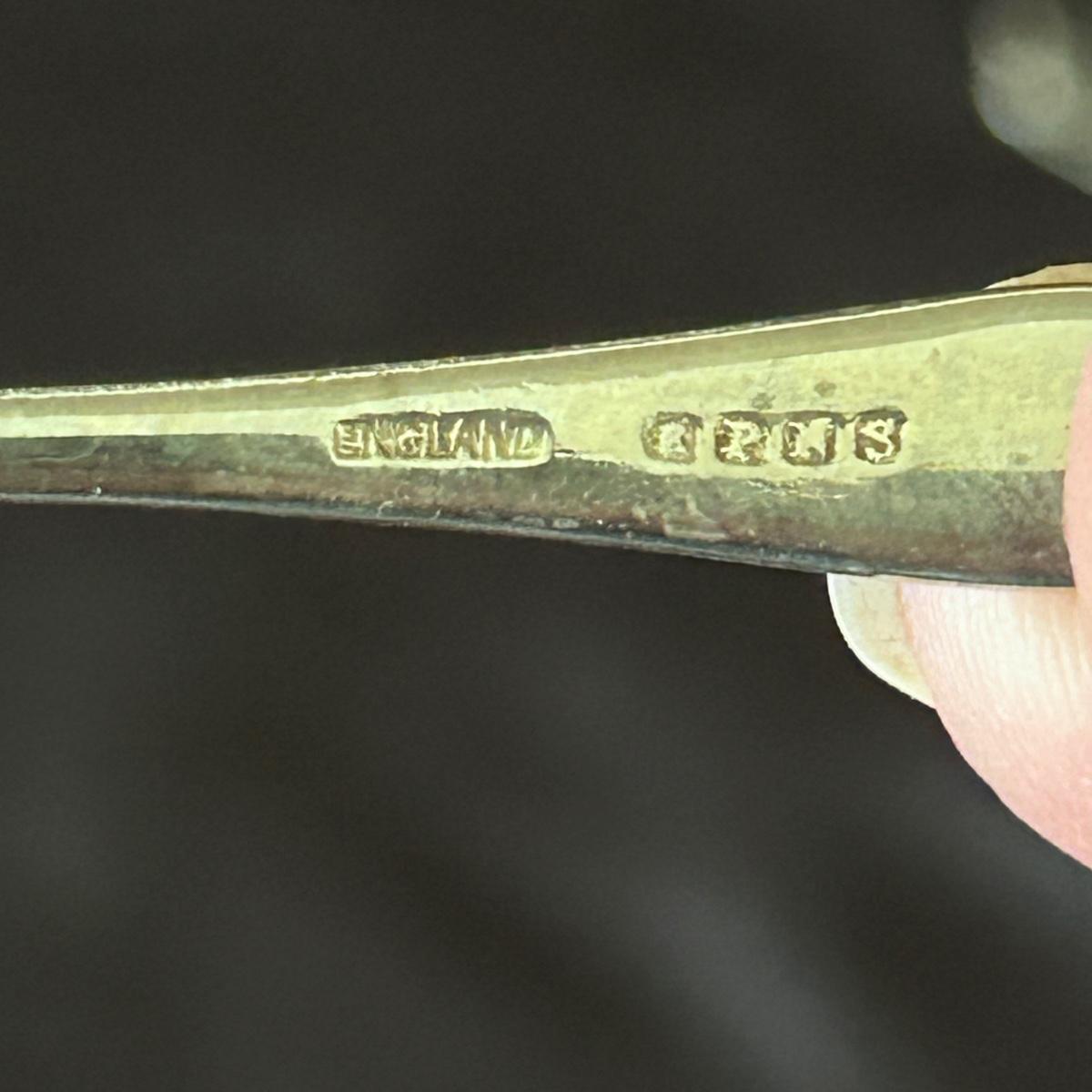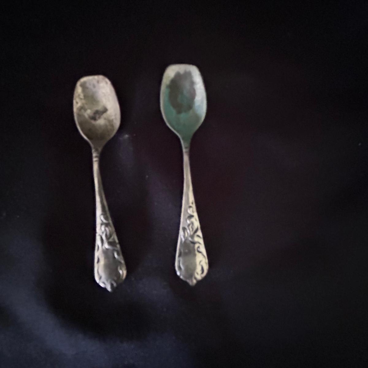 Lot includes 11 cellars in four different patterns 14 spoons in a variety of six styles. There are four glass spoons.. See photos for counts. The six simple spoons from England appear to be Sterling. All known markings are noted in photos. Shipping available.