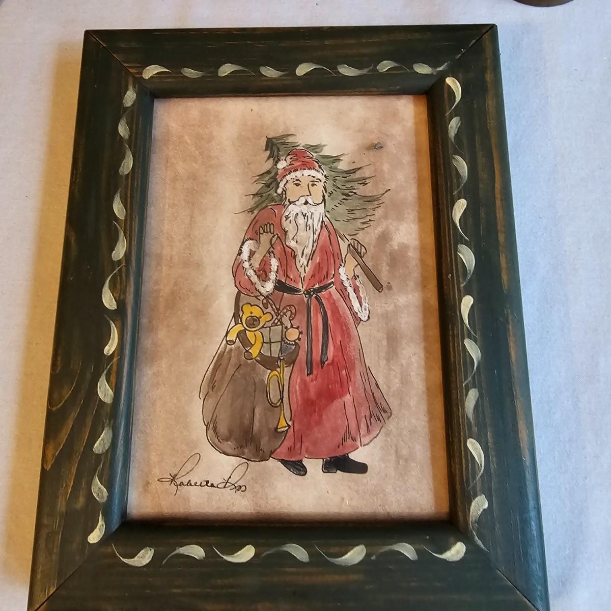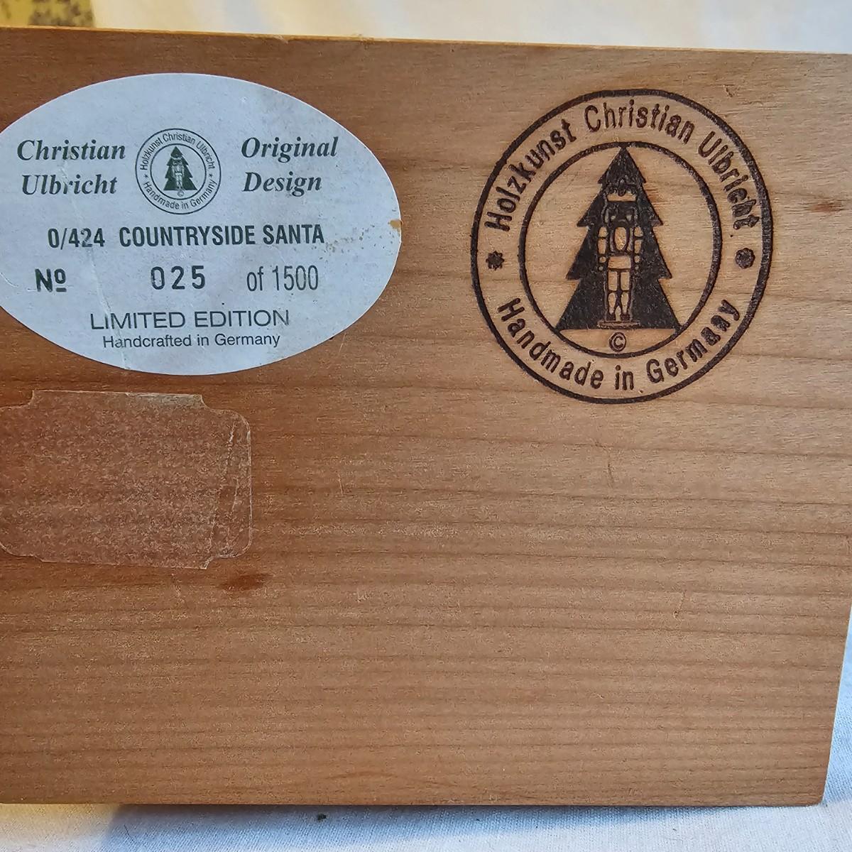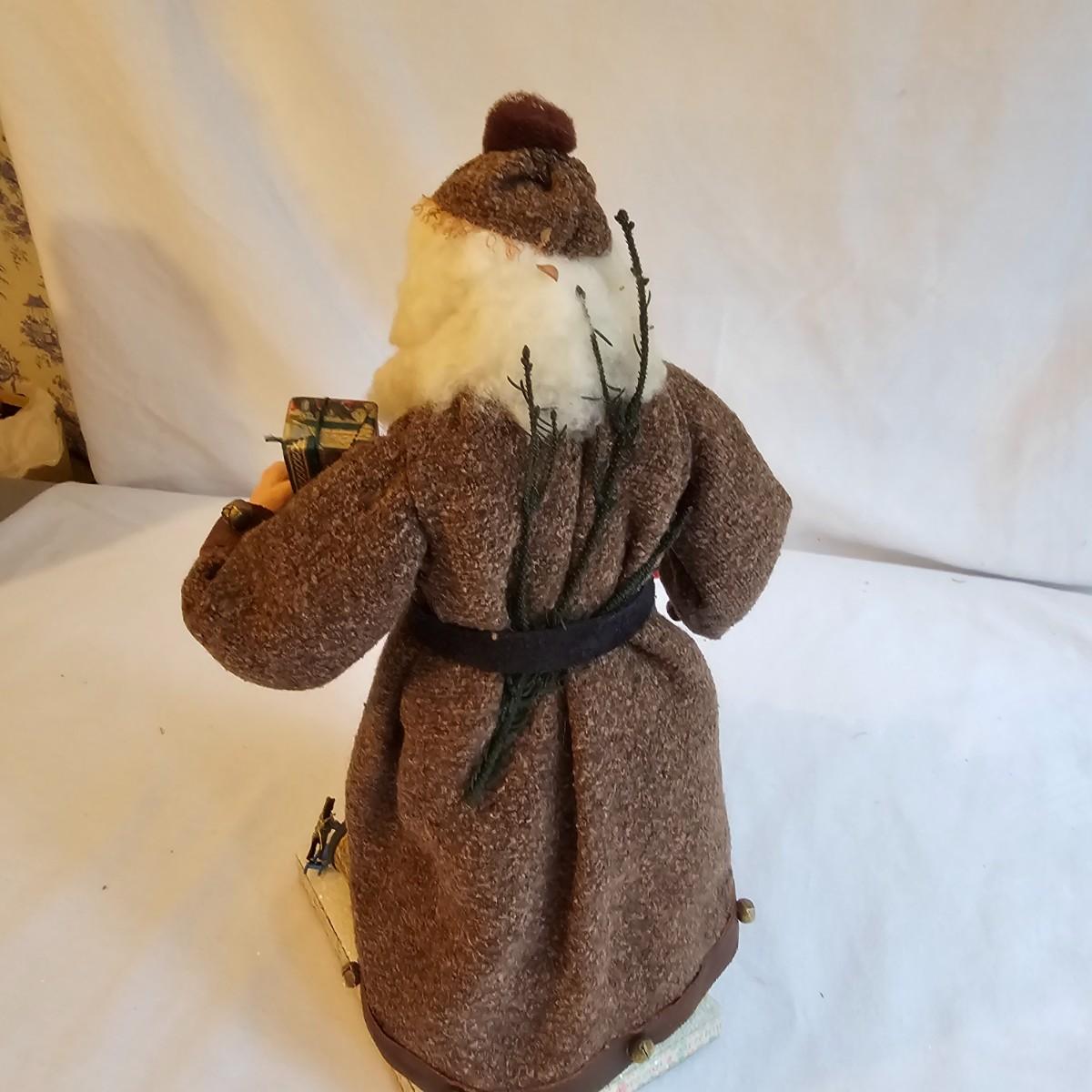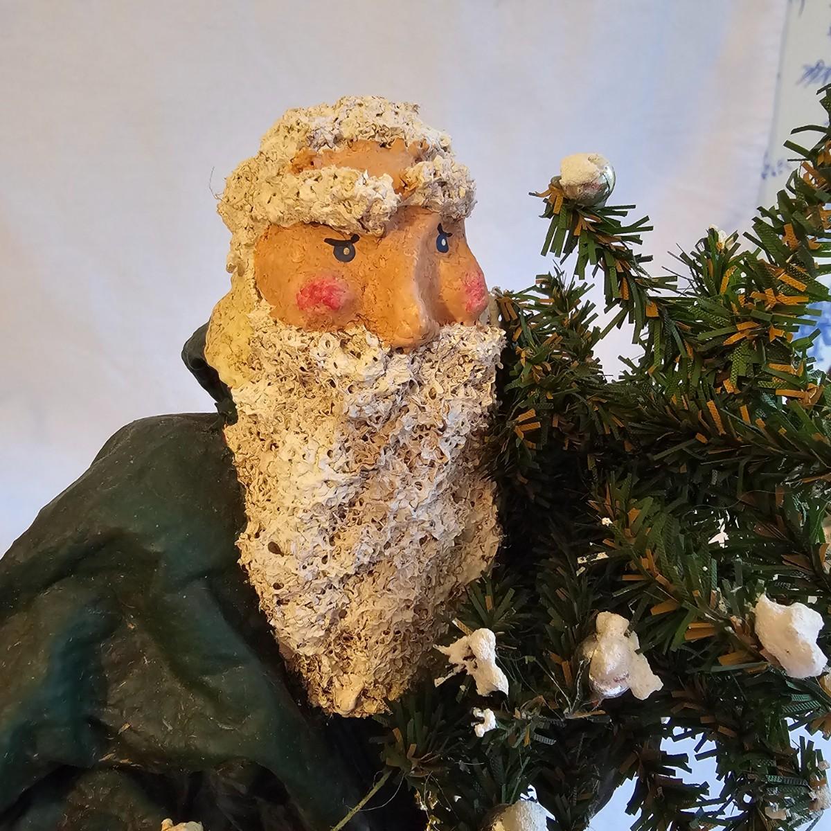 Different and varied styles of Santa, Kris Kringle, Pere Noel. Seven types of figures in many materials. The large red figure is 11" x 9" x 18"H, has burlap cloak and is also a nutcracker, made in Germany. The small carved item is 3" x 4" x 7"H. Most all pieces are hand made, with paper mache, bark and wood used in their makeup. Many are signed. Photo of Santa is 7" x 9". All figures come with their original boxes. See photos for details. Shipping available. Shipping can be costly. We suggest contacting our preferred local shipping provider, Postage Express, with dimensions and getting an estimate before bidding: (828) 670-5501 or postageexpress@yahoo.com.