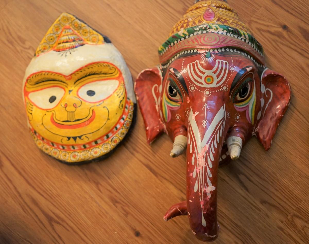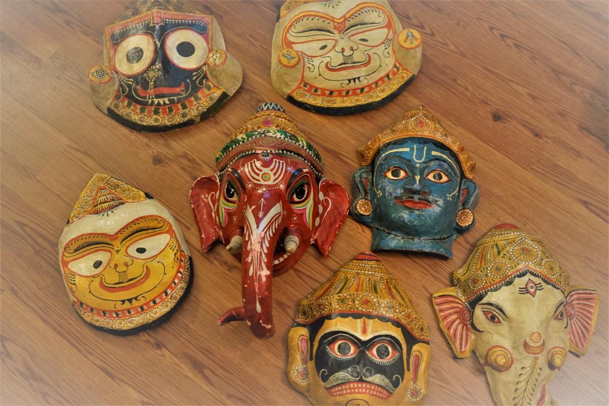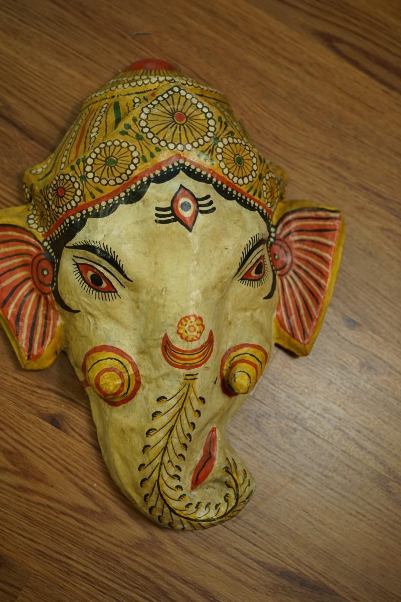 COLLECTION OF SEVEN COLORFUL VINTAGE PAPER MACHIE MASKS FROM INDIA