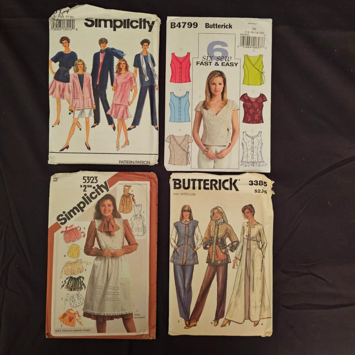 Over 65 pattern packets for making your own clothes, costumes, furniture covers and more. Classic items from Simplicity, Butterick, Vogue and other companies. Many different styles and ideas. No guarantee that all pieces are included in each packet. See photos for details. Shipping available.