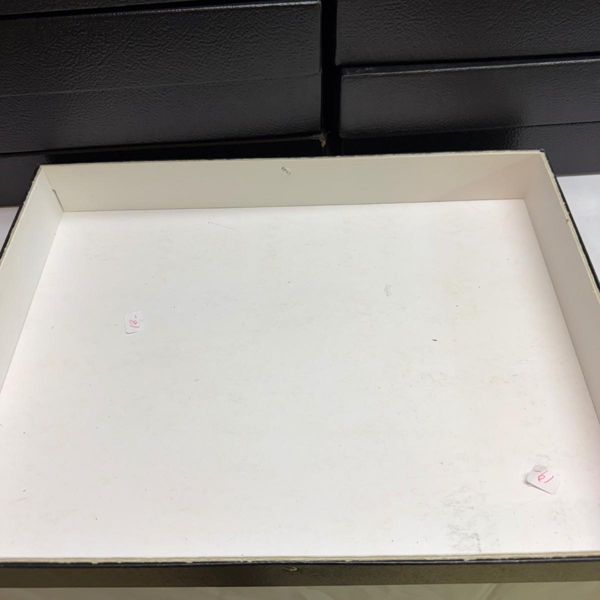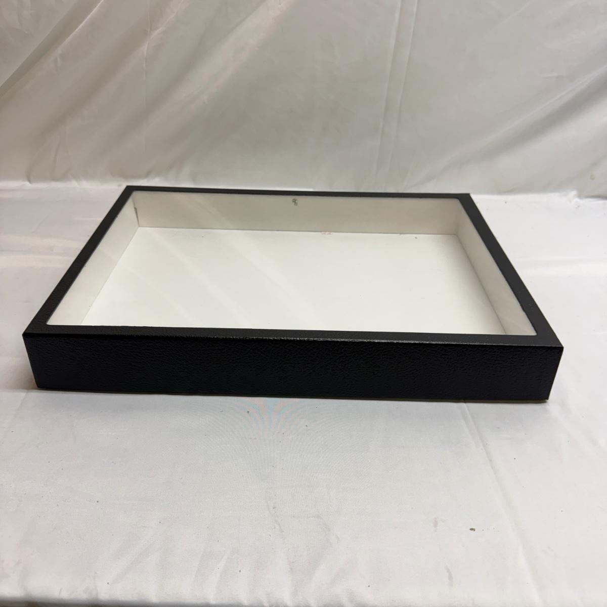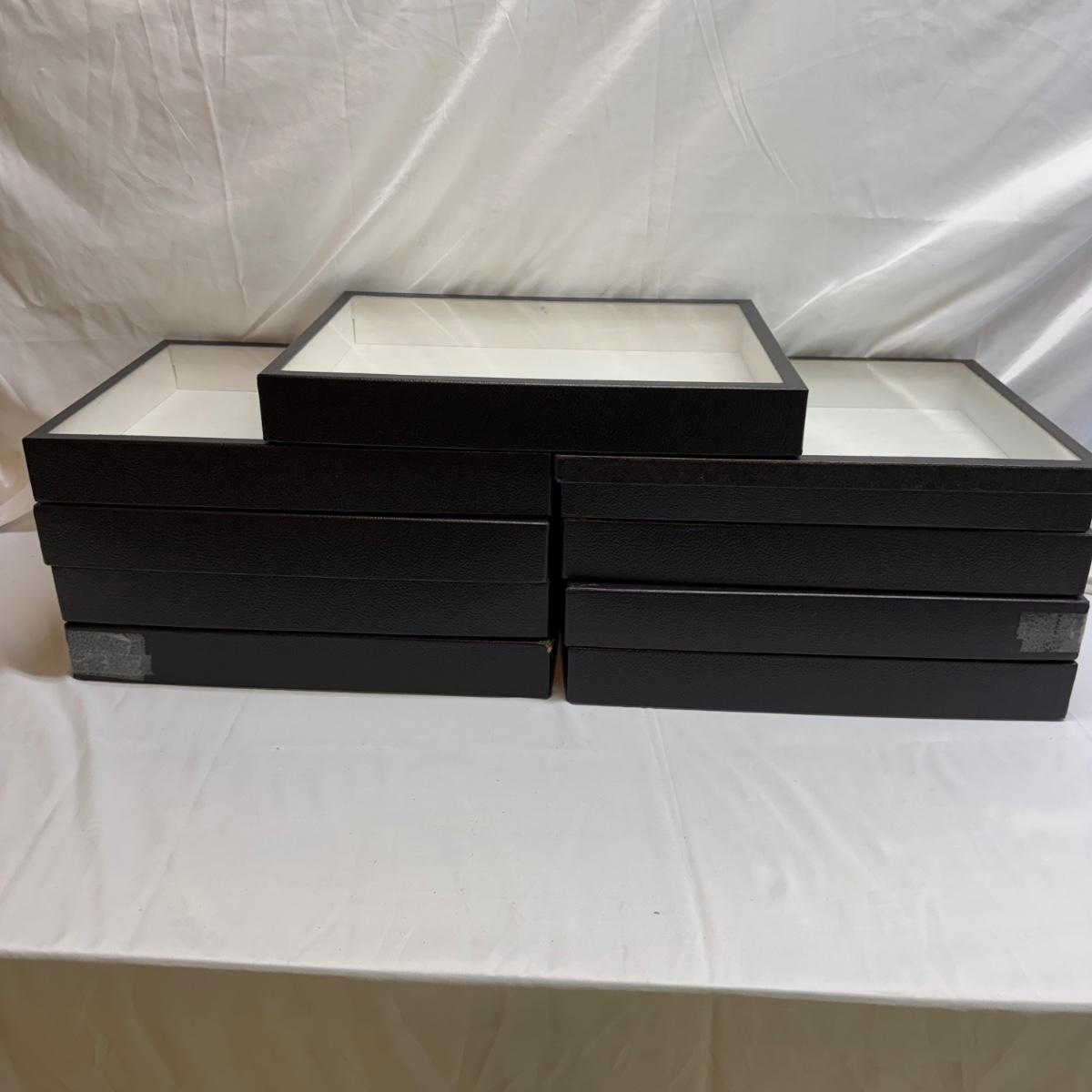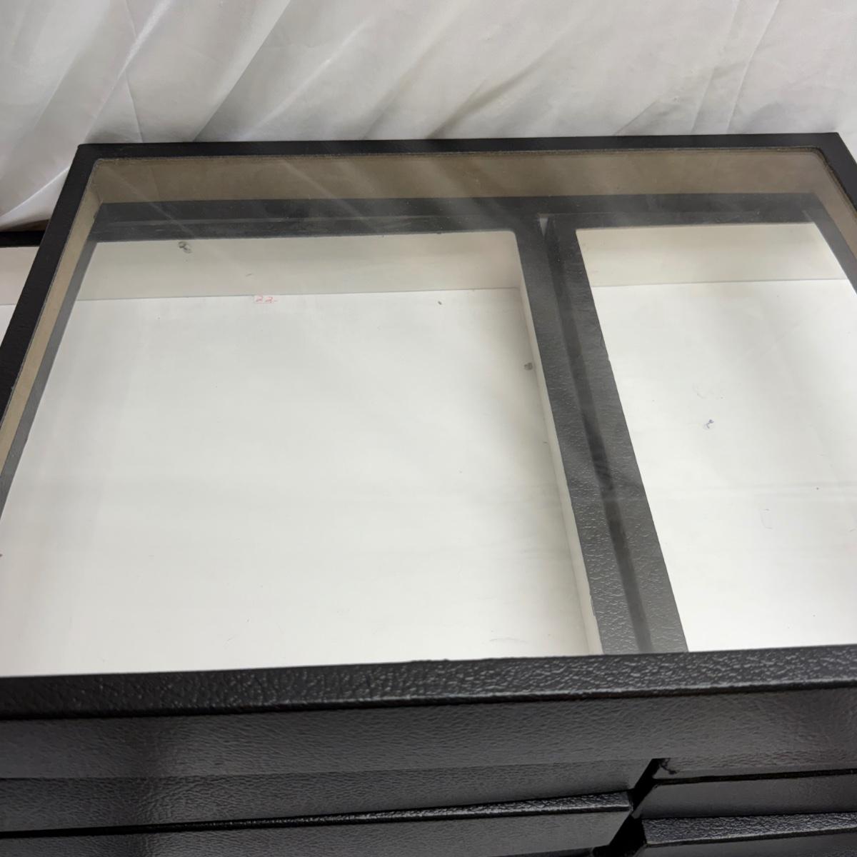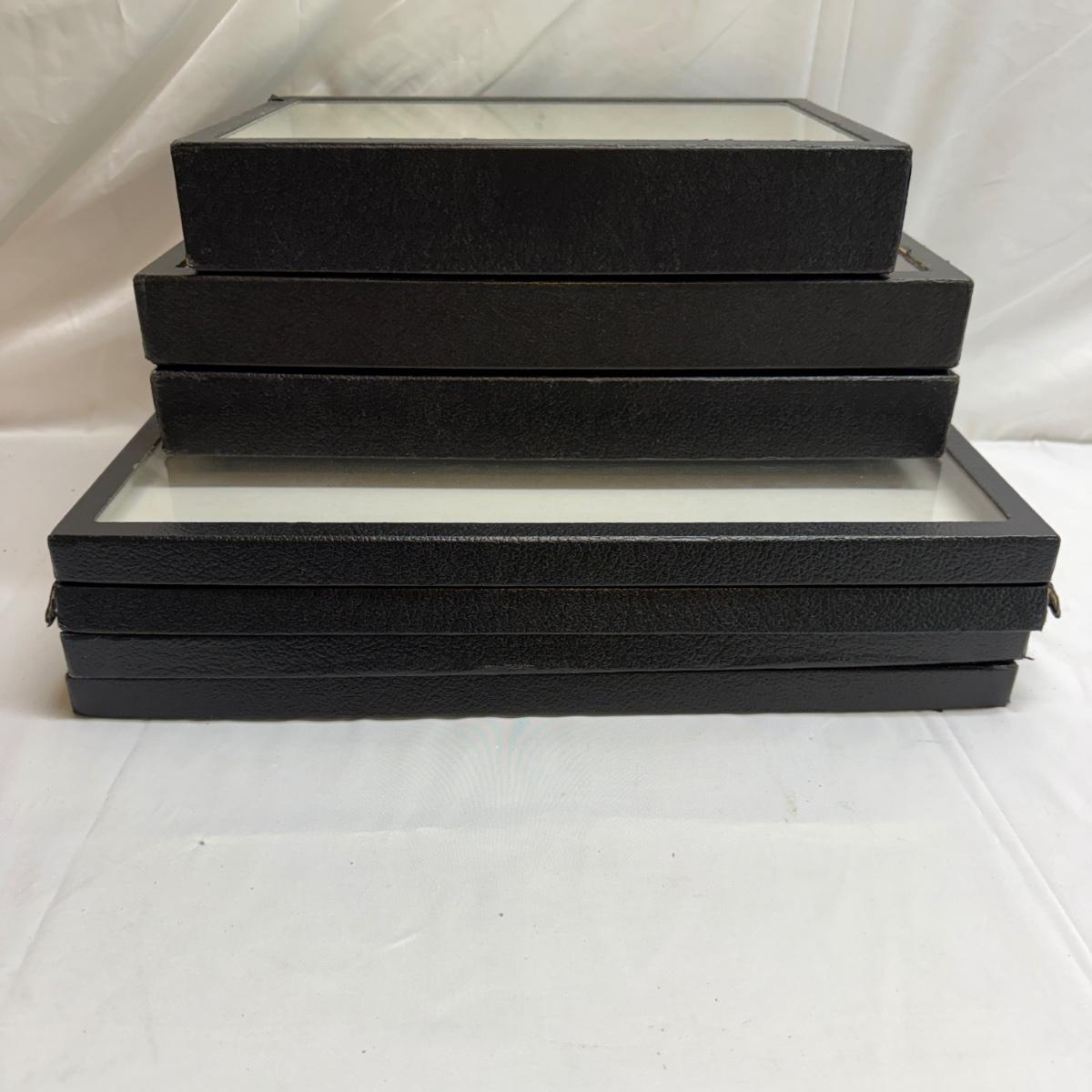 Lot includes 16 cardboard shadow boxes with glass tops. Largest box measures 16” x 12” x 2.5”H. A few corners have been taped, see pictures.