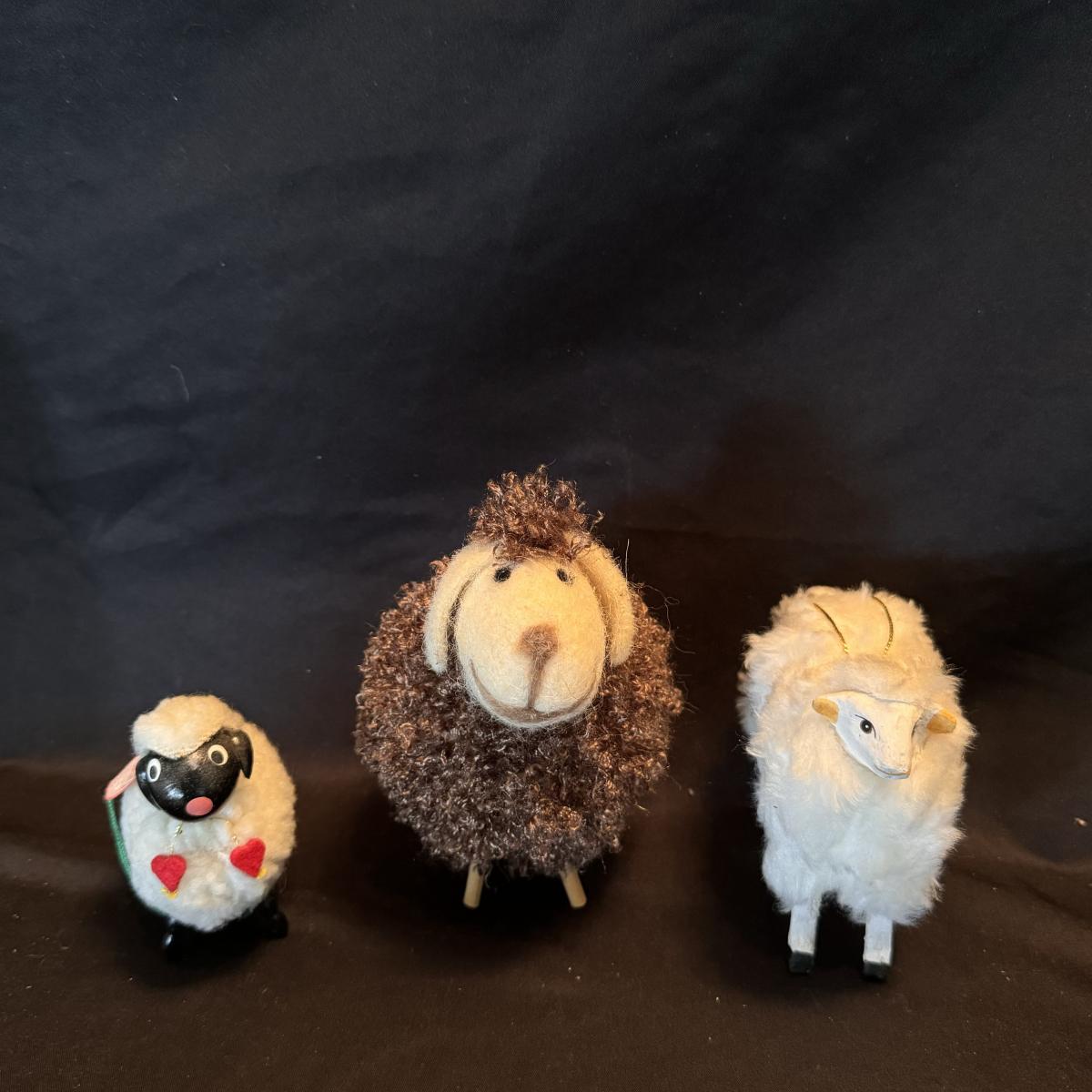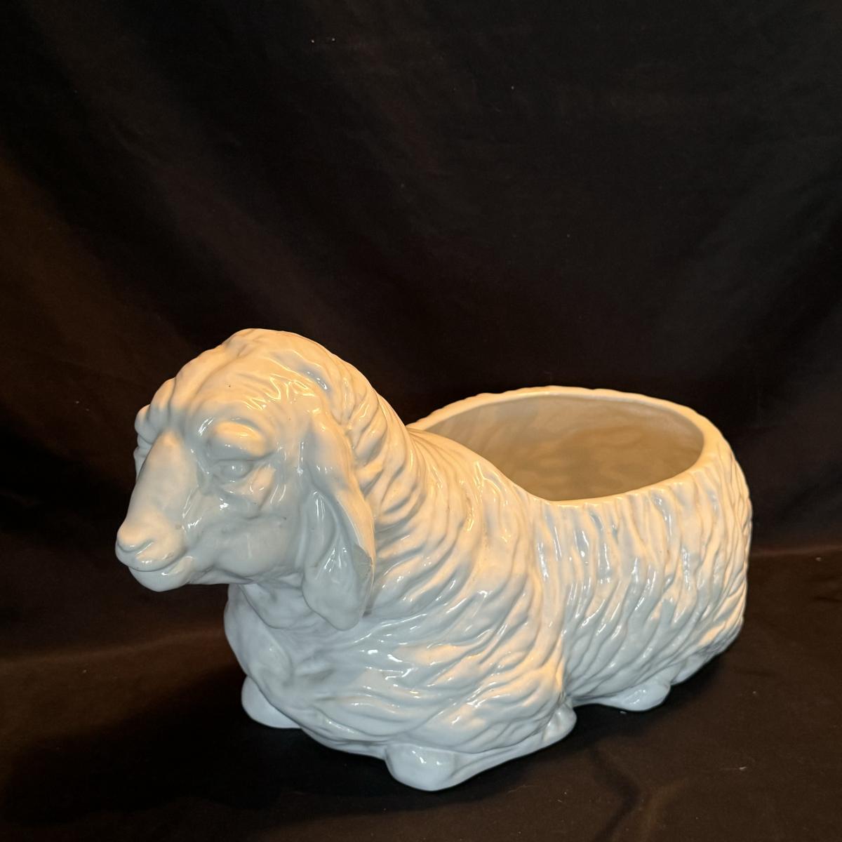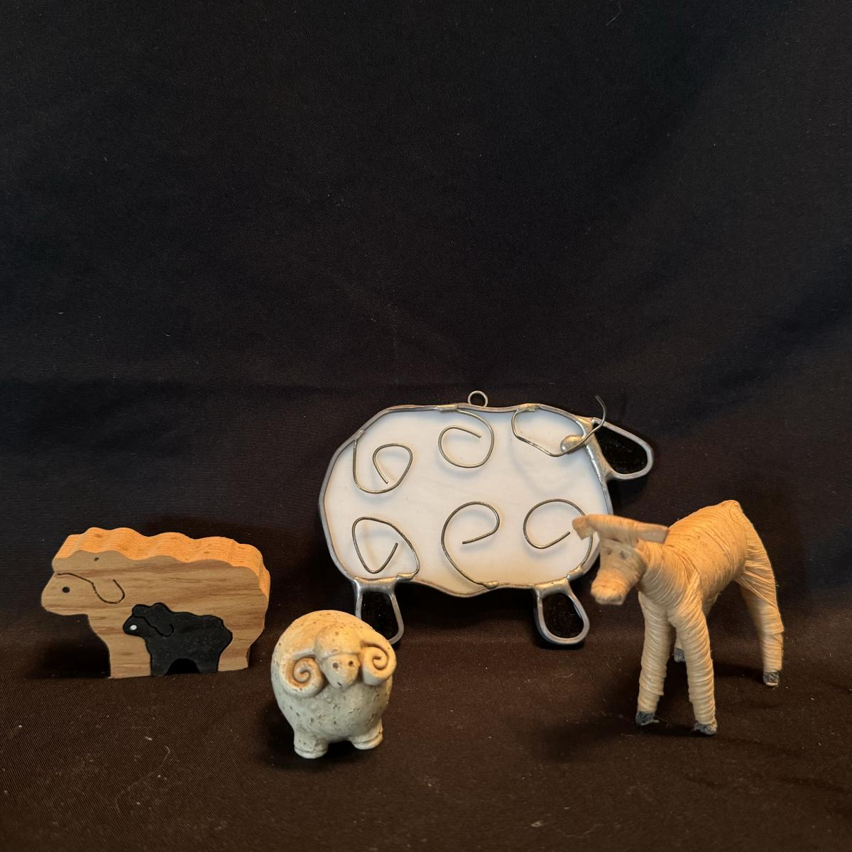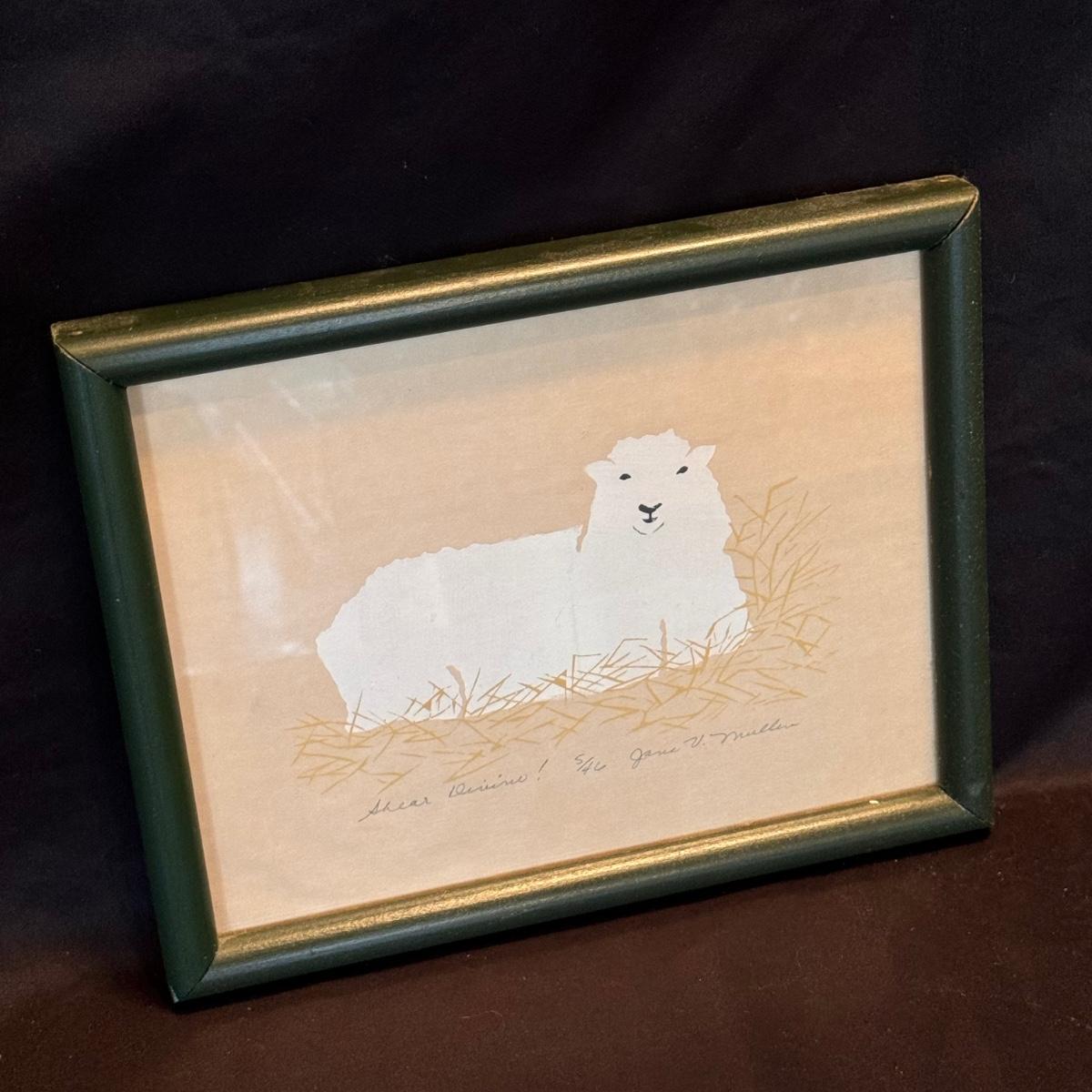 This lot includes over thirty sheep-themed items. There are a handful of tiny sheep figurines with a few labeled Lang & Wise Williamsburg on the bottom. There are two mugs stamped with Staffordshire on the bottom, along with one ceramic planter, three ornaments, and much more. Lastly, there are four framed sheep pictures and drawings, with one signed by Jane V. The largest item is the ceramic planter that measures 15” x 8” x 9”H.