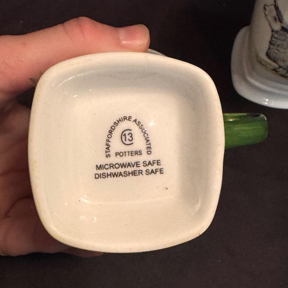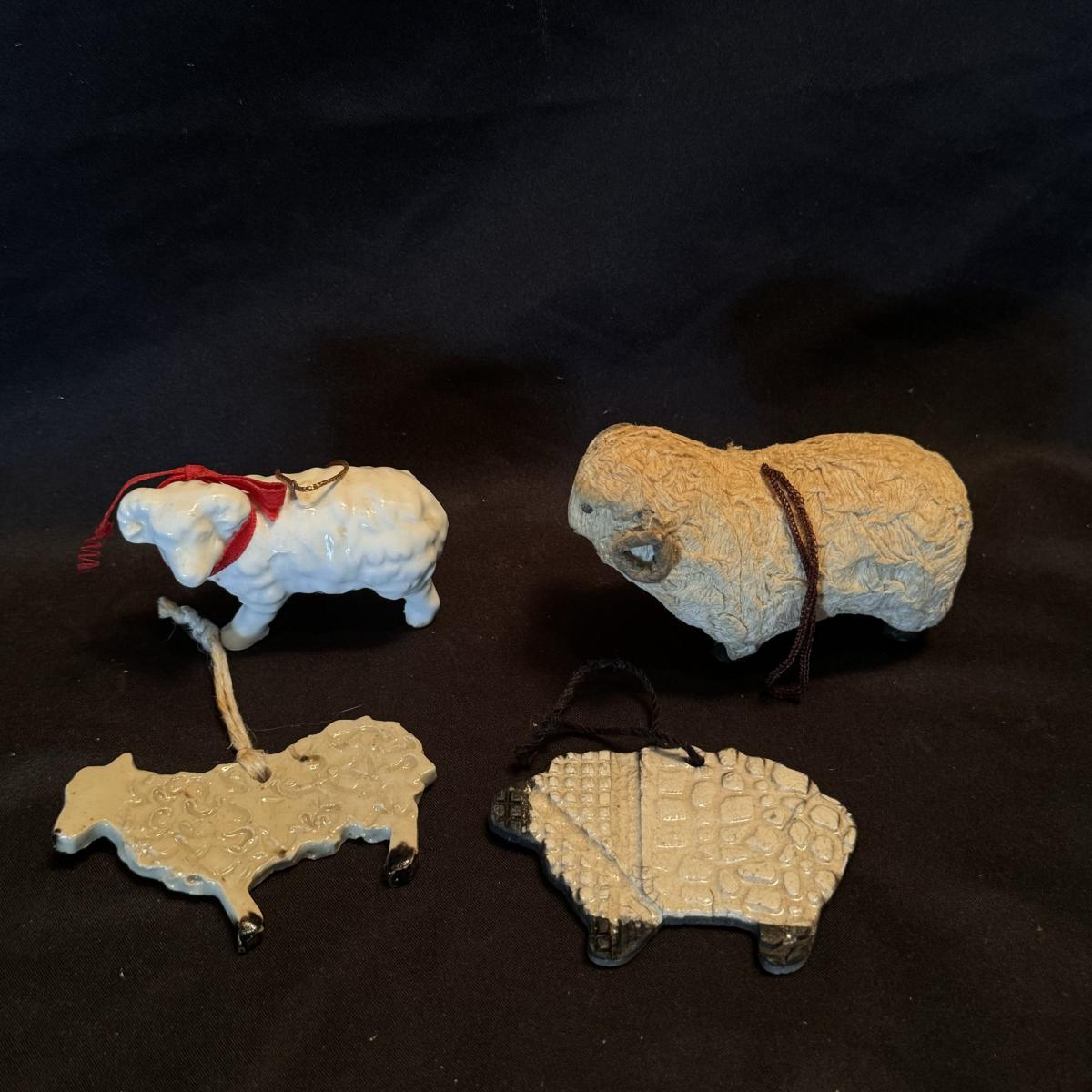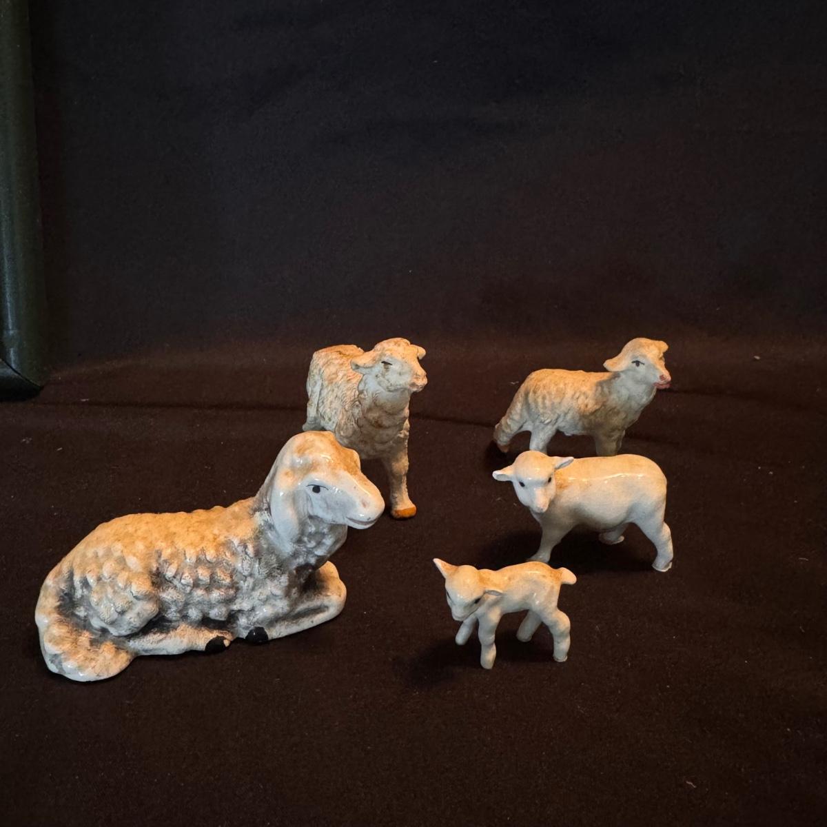 This lot includes over thirty sheep-themed items. There are a handful of tiny sheep figurines with a few labeled Lang & Wise Williamsburg on the bottom. There are two mugs stamped with Staffordshire on the bottom, along with one ceramic planter, three ornaments, and much more. Lastly, there are four framed sheep pictures and drawings, with one signed by Jane V. The largest item is the ceramic planter that measures 15” x 8” x 9”H.