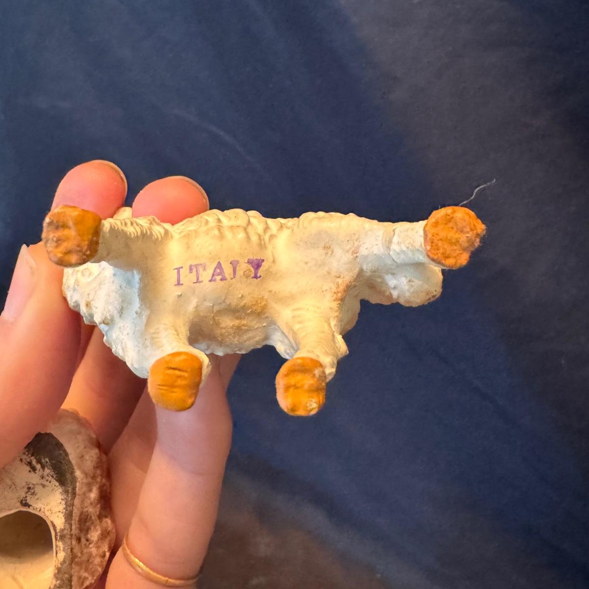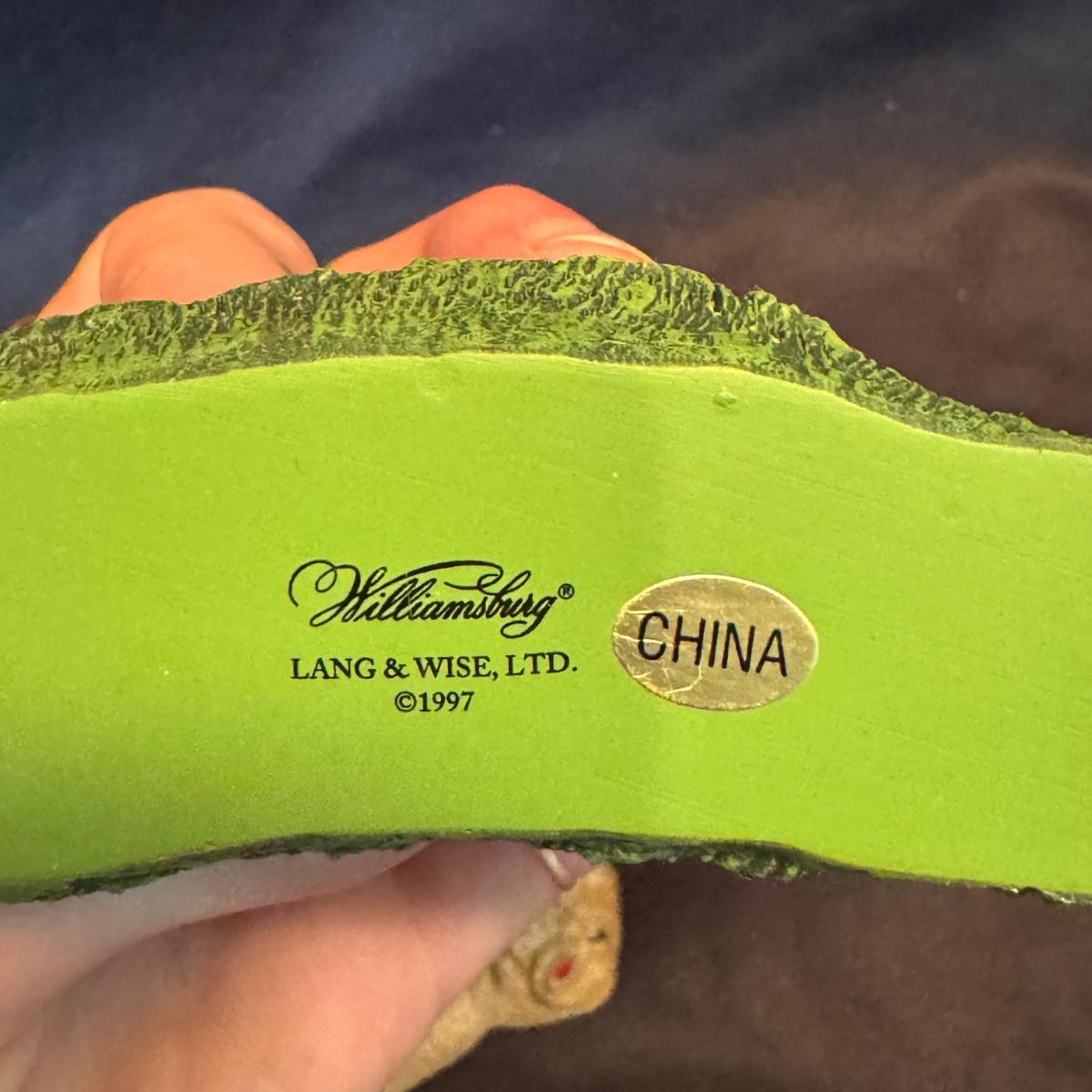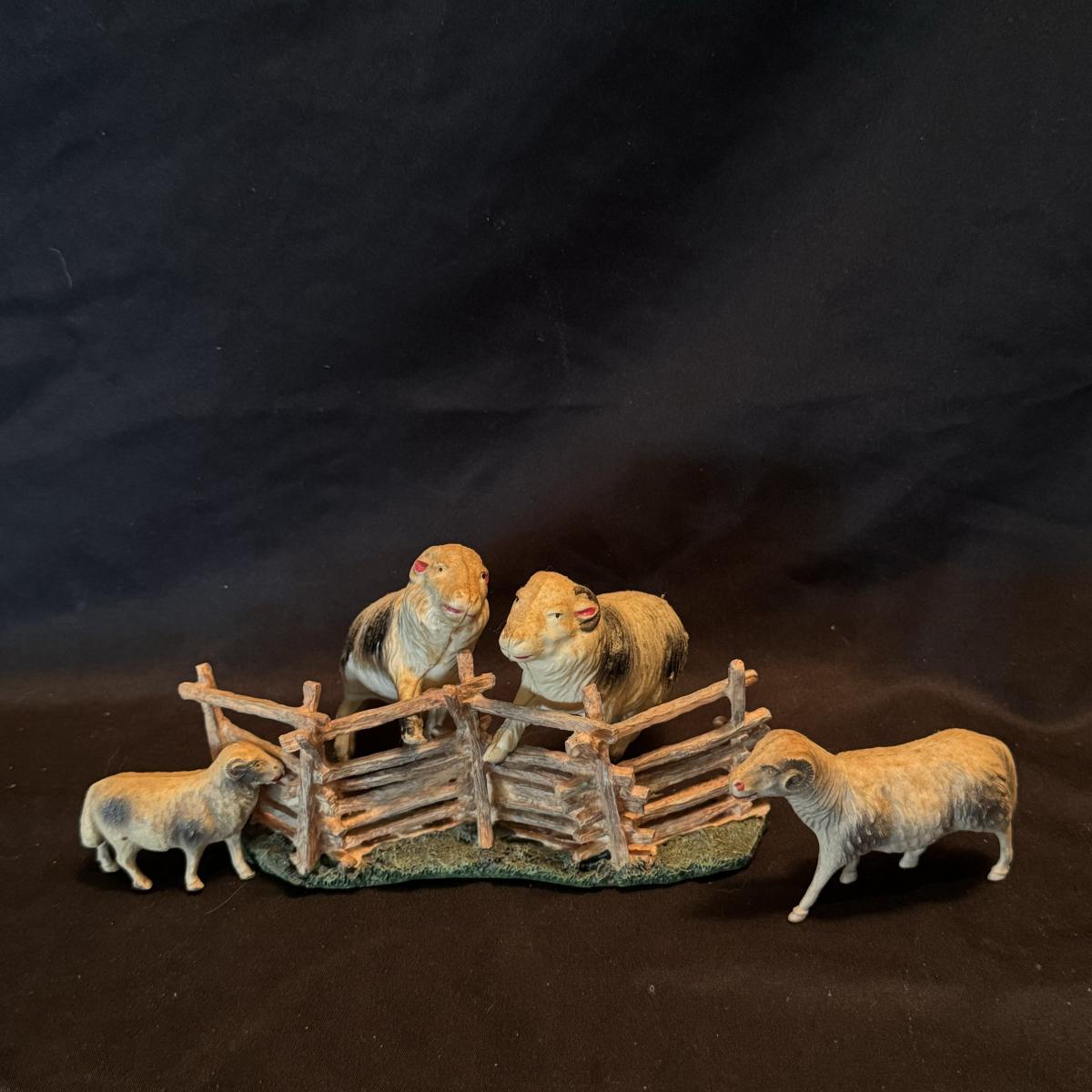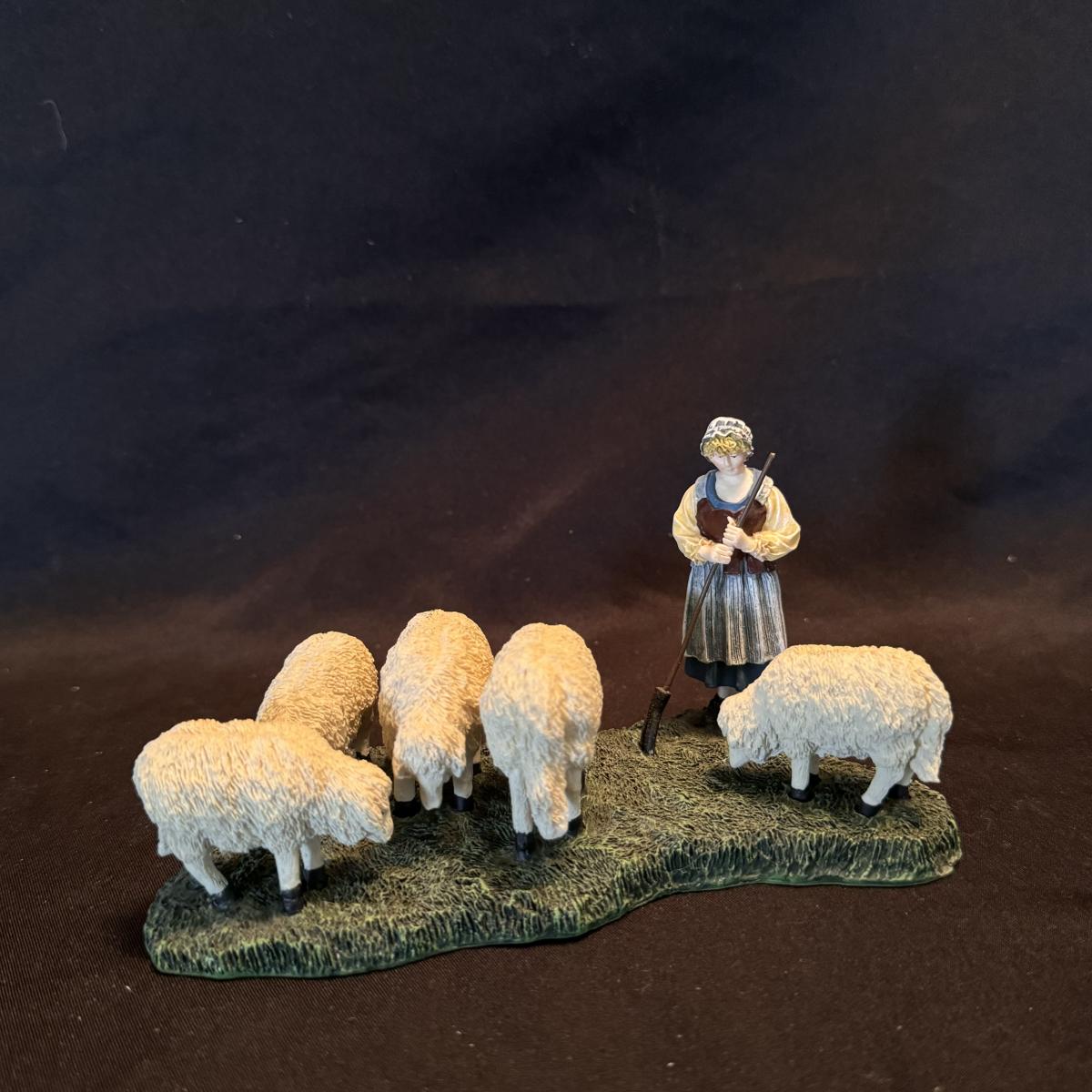 This lot includes over thirty sheep-themed items. There are a handful of tiny sheep figurines with a few labeled Lang & Wise Williamsburg on the bottom. There are two mugs stamped with Staffordshire on the bottom, along with one ceramic planter, three ornaments, and much more. Lastly, there are four framed sheep pictures and drawings, with one signed by Jane V. The largest item is the ceramic planter that measures 15” x 8” x 9”H.