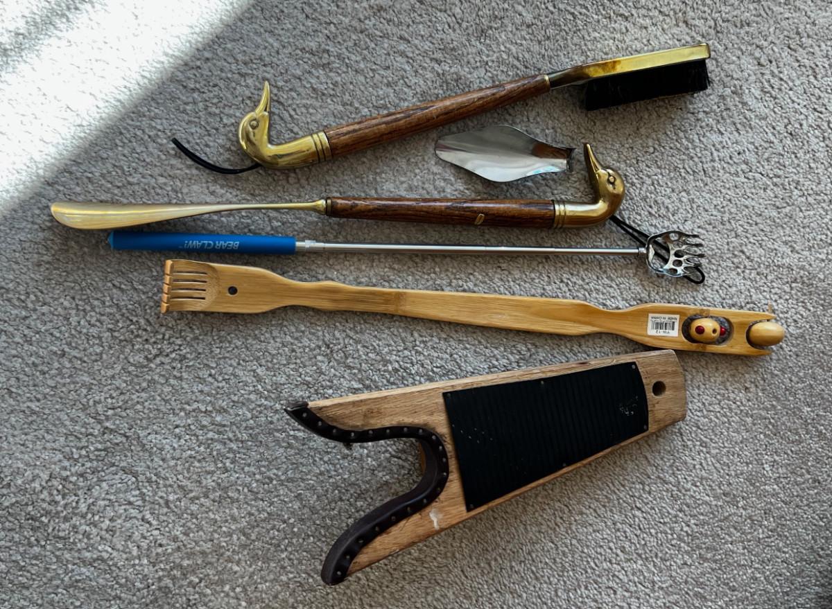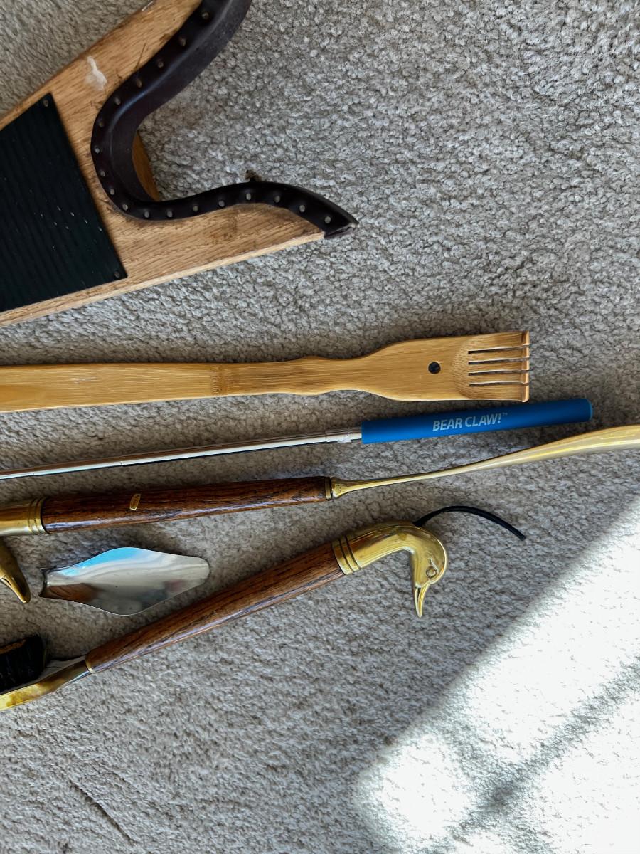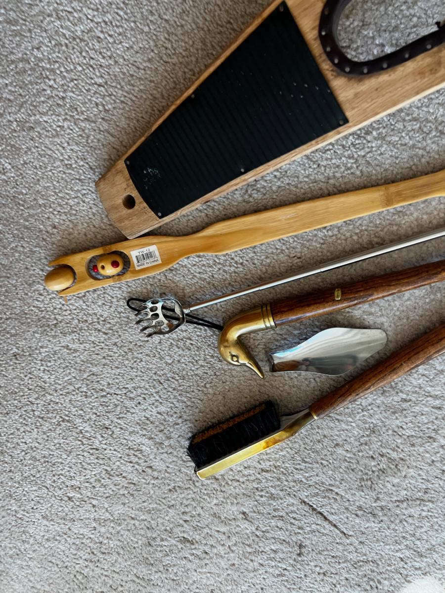 Collection of Shoe Horns, Boot Jack, Back Scratchers