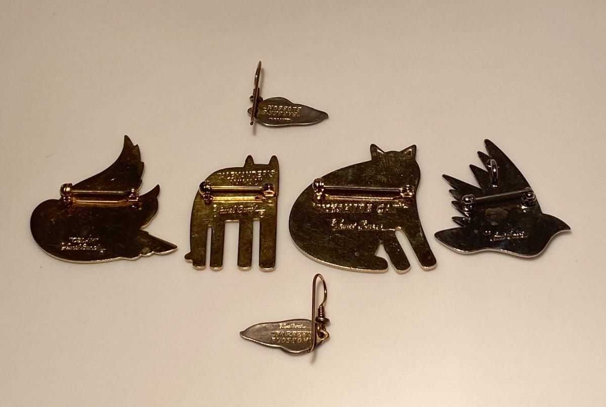 Collection of signed Laurel Burch jewelry/accessories lot. Marked. Preowned and sold as is