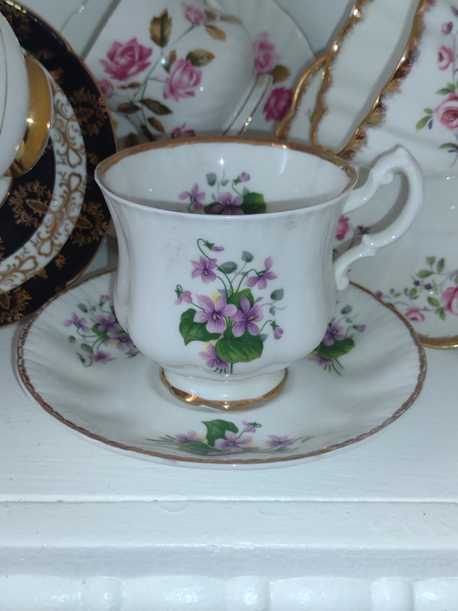 Collection of Six Cups with Saucers- Assorted Makers (Choice B)