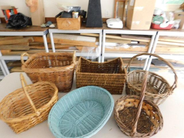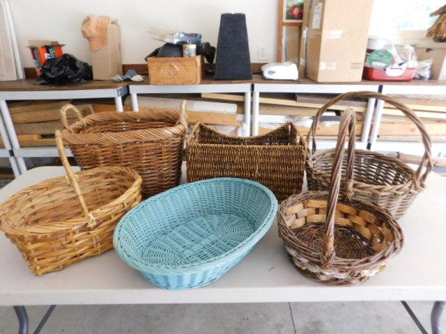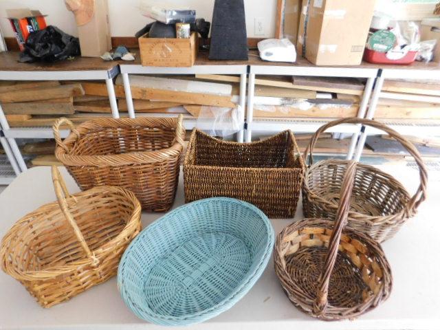 Collection of Six Wicker Weave Baskets Assorted Sizes and Styles