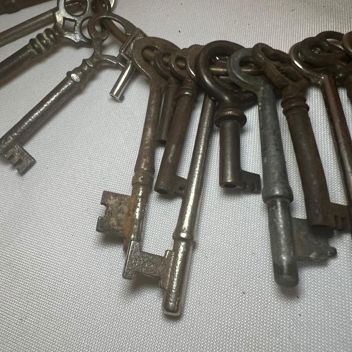 Over 30 skeleton keys in this collection. Keys come on a metal ring.
