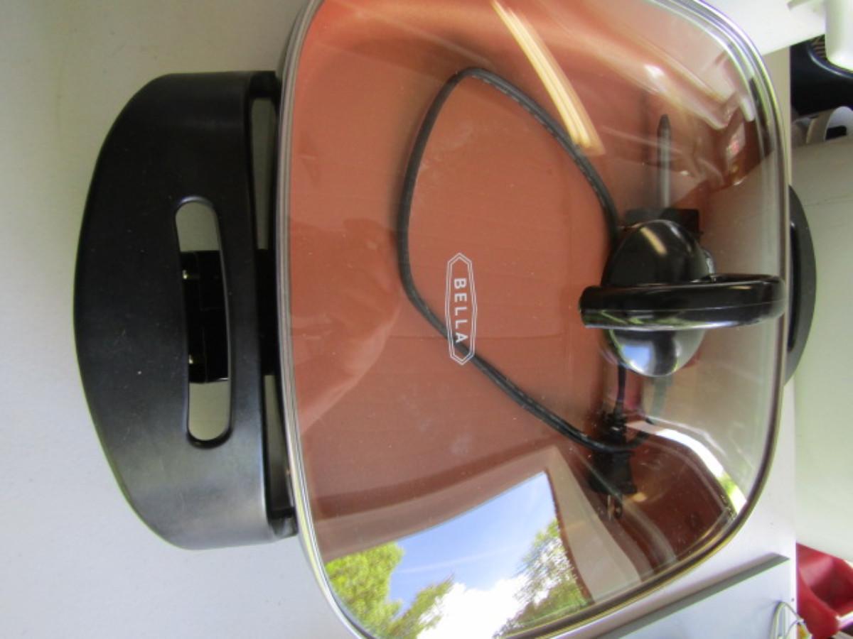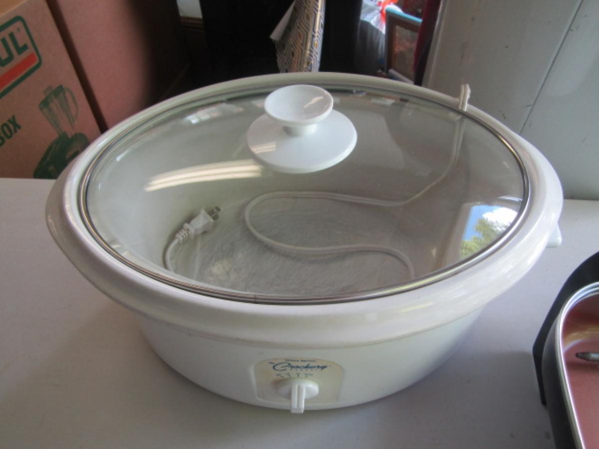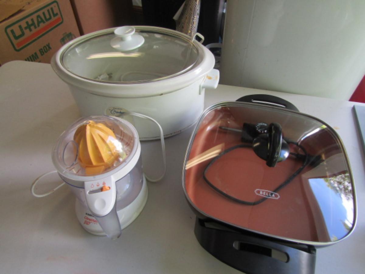 Collection of Small Appliances. Juicer, Crock Pot, electric skillet, and Hamilton Beach coffee maker.