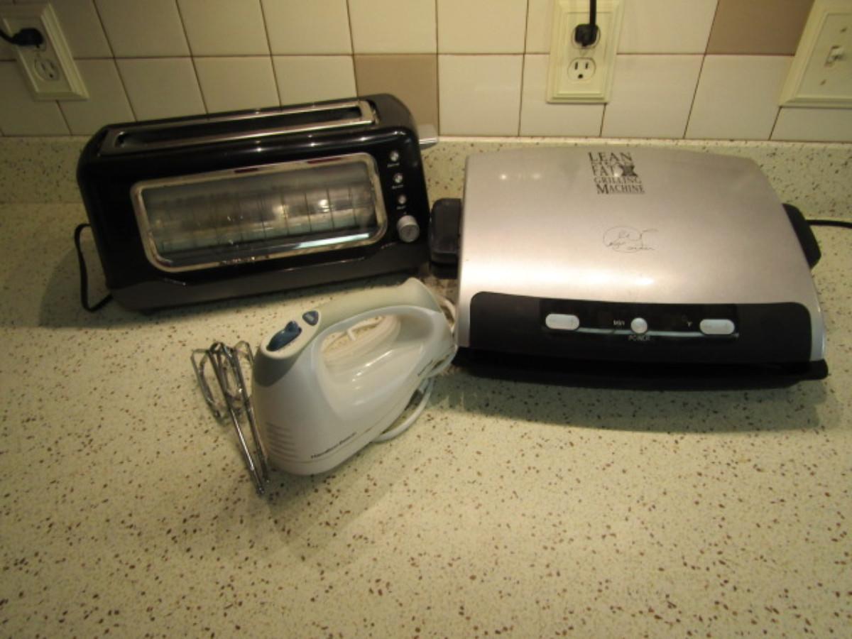 Collection of Small Appliances:  George Foreman Grill, Hand Mixer,  and Toaster