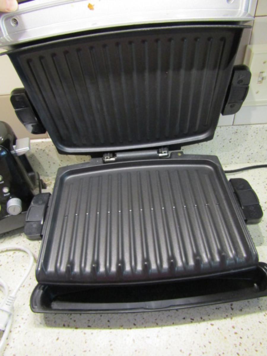 Collection of Small Appliances: George Foreman Grill, Hand Mixer, and Toaster