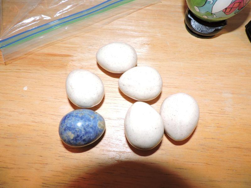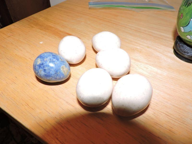 Collection of 6 small marble/stone eggs. **Please read Terms and Conditions before placing a bid. Pick up is Thursday, August 15, 2019 from 4pm to 7pm or Sunday, August 18 from 11am-2pm in Mullica Hill. All sales are final. All sales are as is, where is. Please review all photos. Any props included in photos are not included in listing. All measurements are approximate.