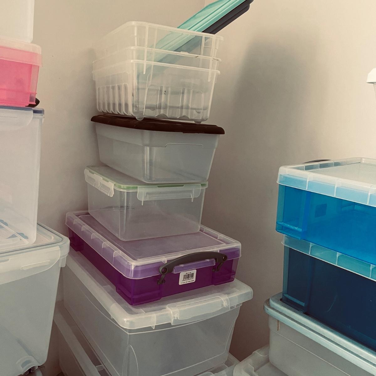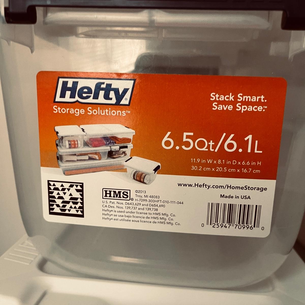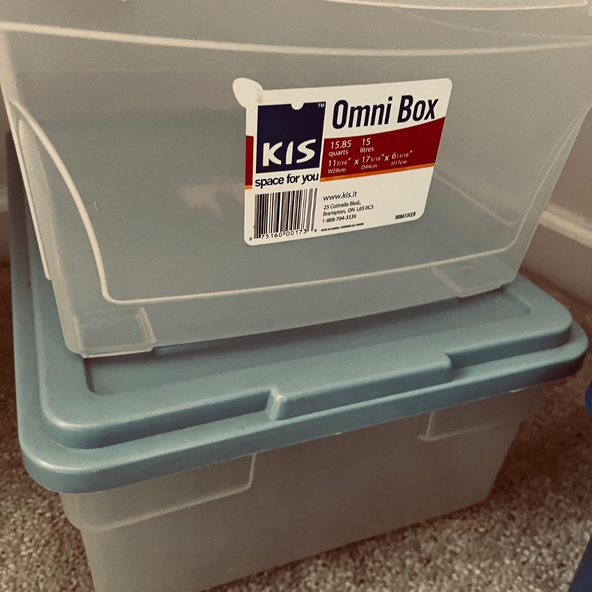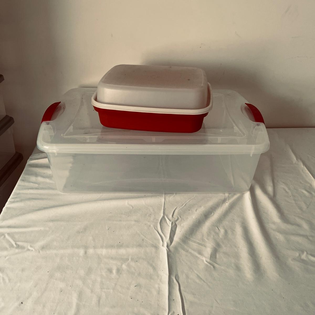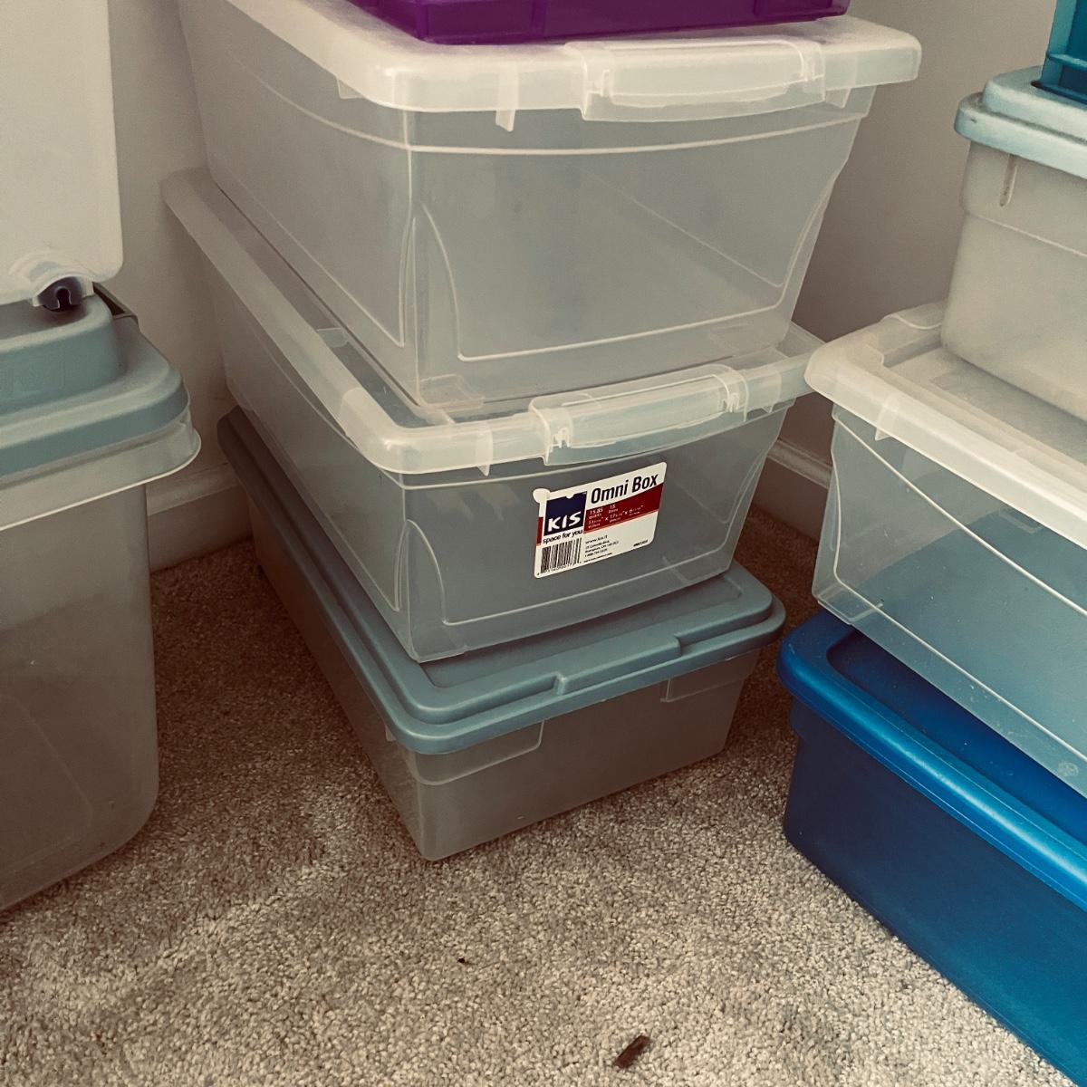 Lot contains over 35 bins in a variety of sizes and shapes including brands Sterilite, Hefty, Snap Lock and more. Please see photos for inventory.