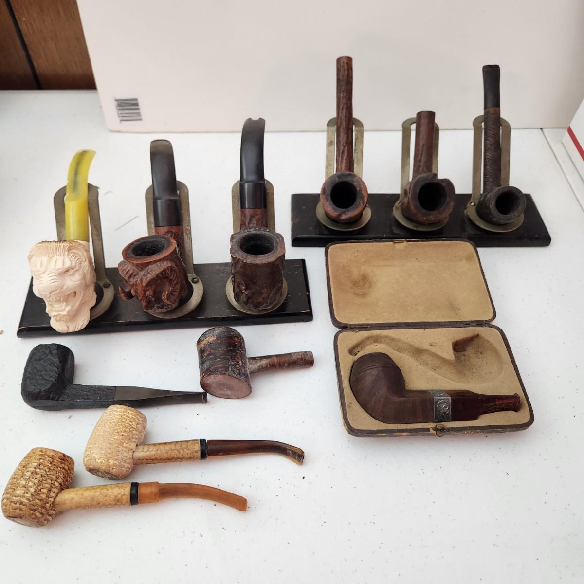 Collection of Smoking Pipes Meerschaum, Custombilt Imported Briar Sheep Head Lion Head, Ropp 917, Thorneycroft BBB Own Mark,, Starfire