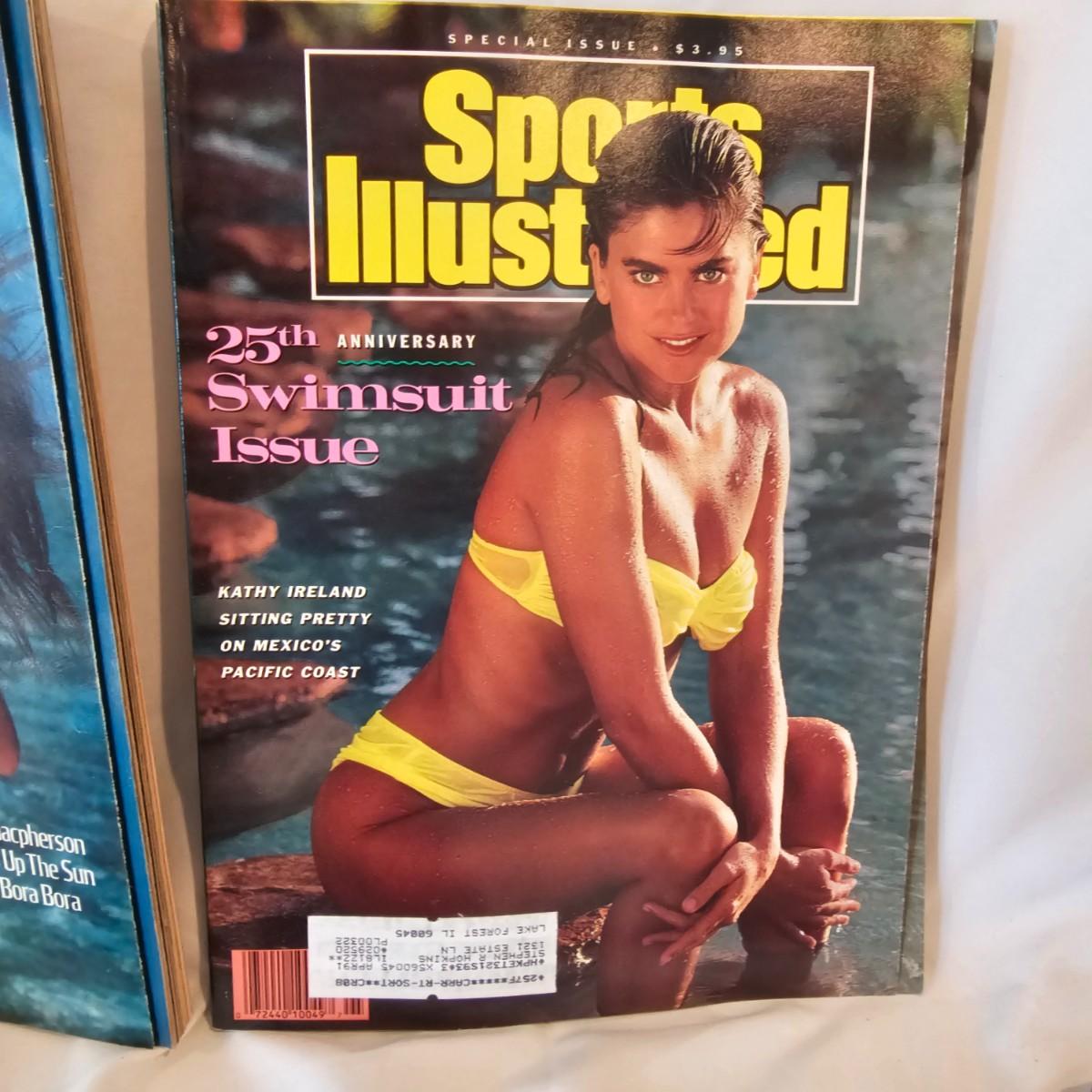 Shown only as Sports Illustrated can. 23 issues of swimsuits, sand, sun and more. Issues range from 1990 thru 2010, as well as 1986 and the 1989 25th Anniversary issue. Elle McPherson, Cheryl Tiegs, Kathy Ireland, Heidi Klum and more are all here. The 2000 issue with the 3D images does include the 3D glasses, still attached inside. See photos for details. Shipping available. All sales are final. No returns or refunds. Please bid accordingly.