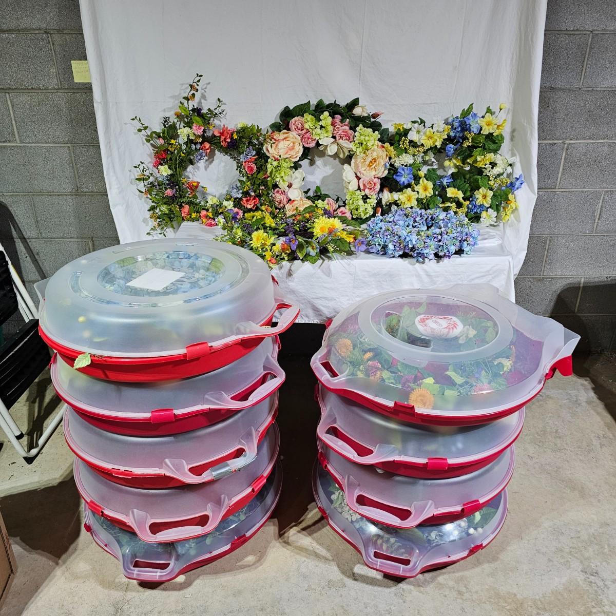 Collection of Spring Floral Wreaths w/ Sterilite Storage Containers (B1-JS)