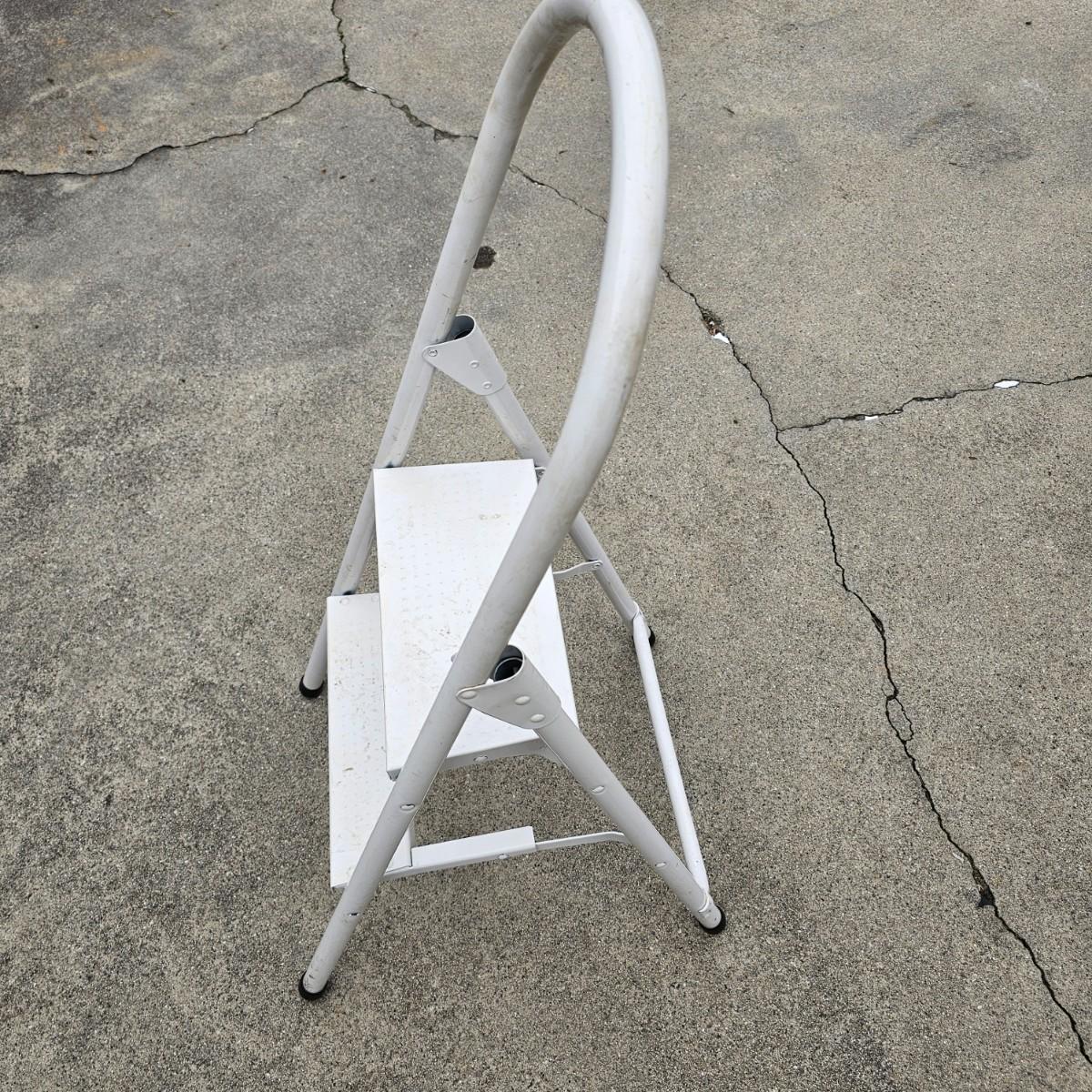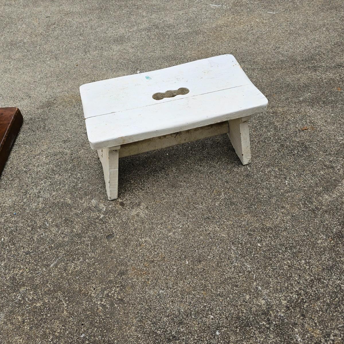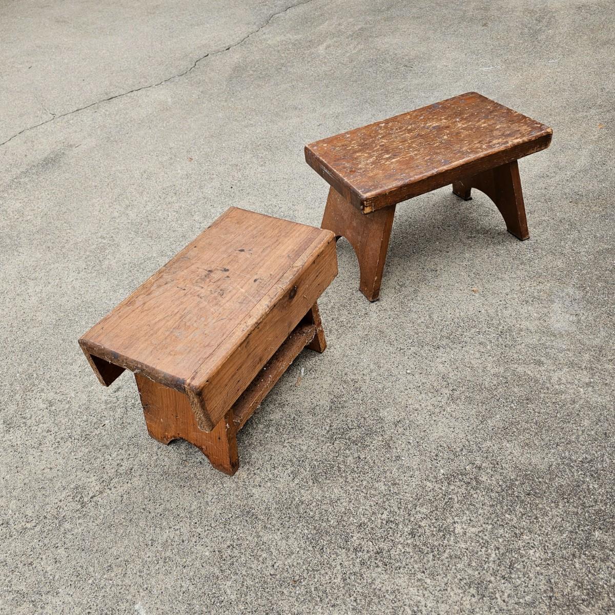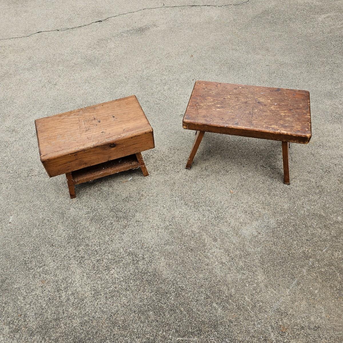 Eight handy stepstools for indoor or outdoor use. One metal, three plastic and four wooden items. Folding metal stepstool measures 14" x 19" x 39"H. Gray plastic items are 13" x 17" x 8"H. Small white wooden stool is 7" x 13" x 7"H. Wooden stools appear to be handmade. See photos for details. Local pickup only.