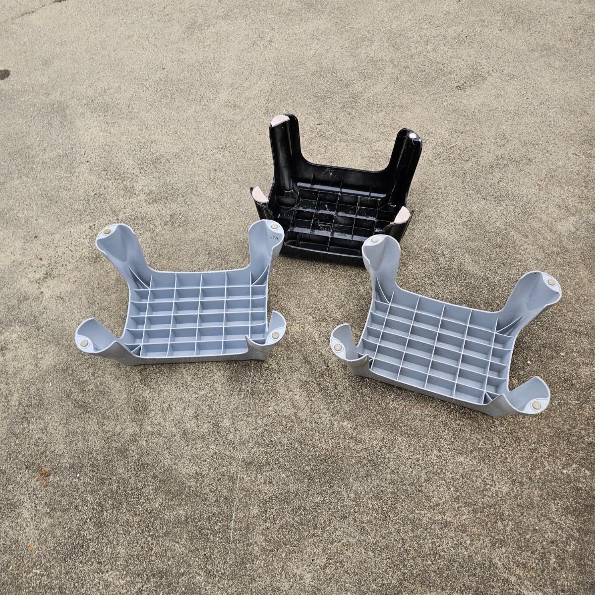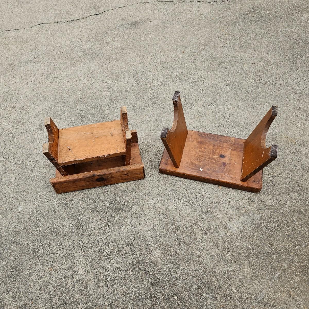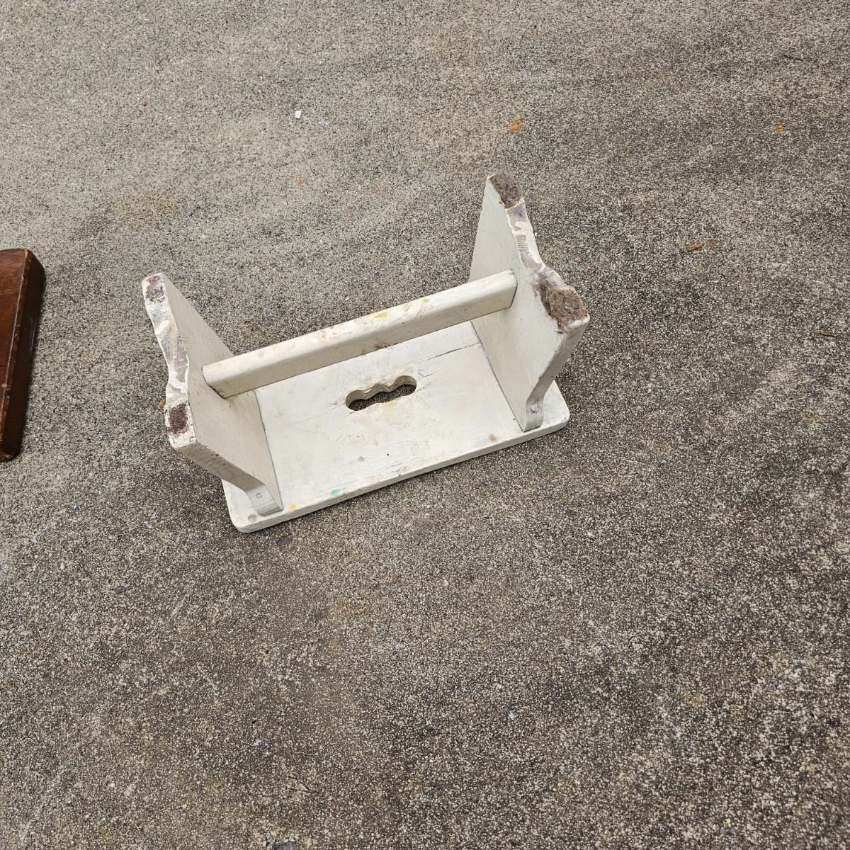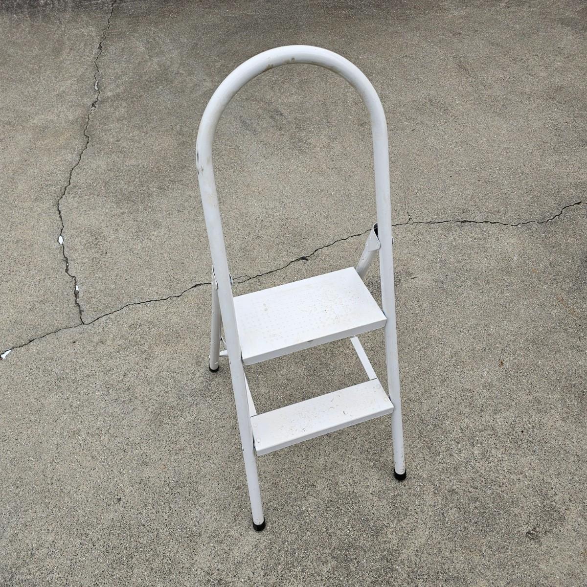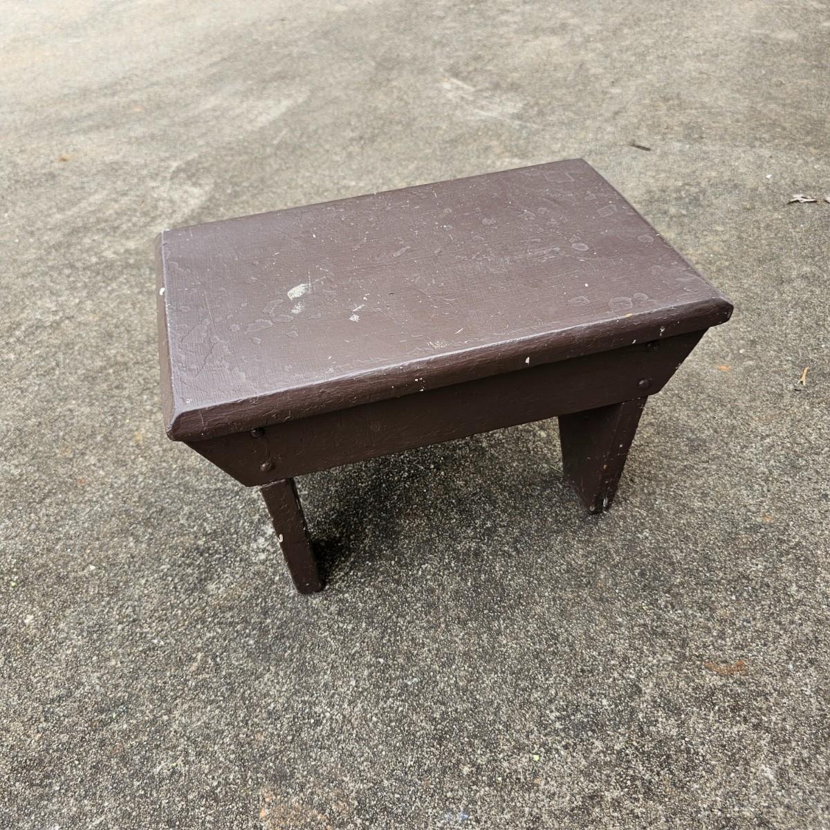 Eight handy stepstools for indoor or outdoor use. One metal, three plastic and four wooden items. Folding metal stepstool measures 14" x 19" x 39"H. Gray plastic items are 13" x 17" x 8"H. Small white wooden stool is 7" x 13" x 7"H. Wooden stools appear to be handmade. See photos for details. Local pickup only.