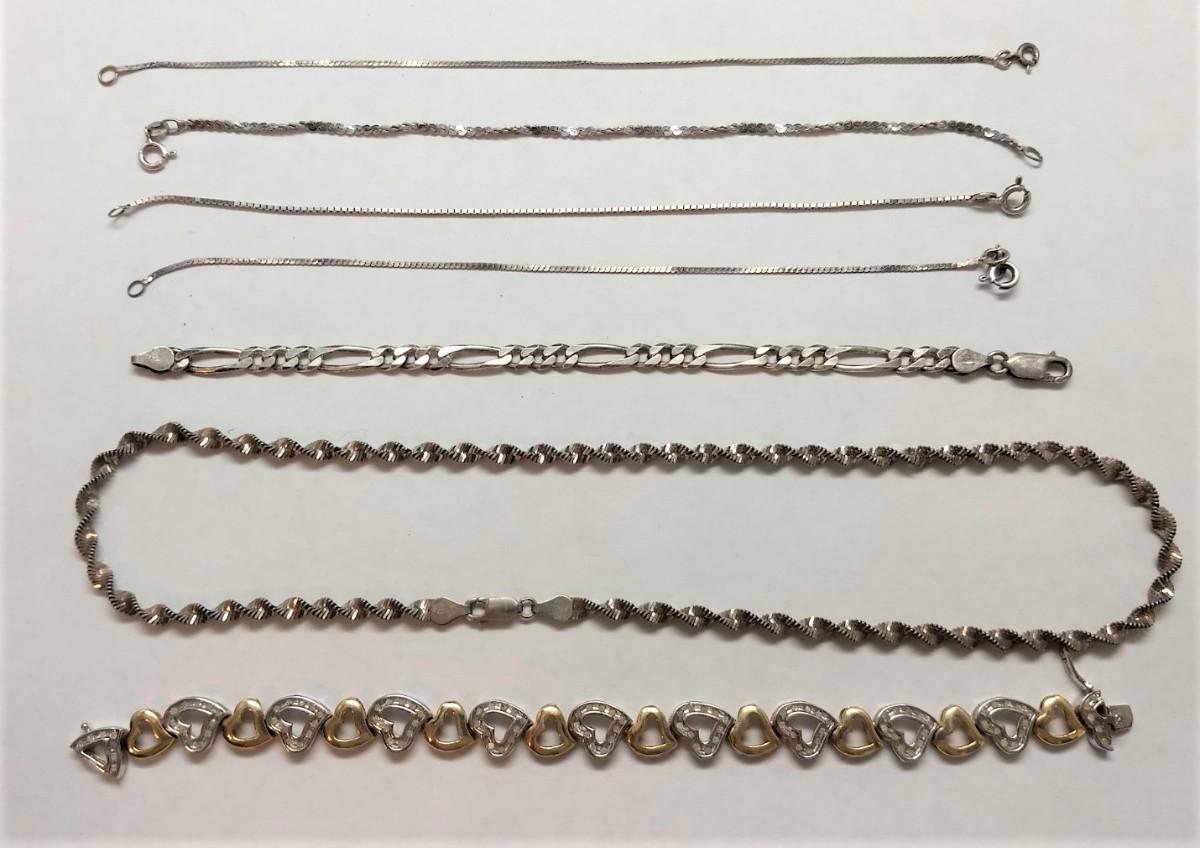 Collection of Sterling .925 Necklaces and Bracelets Mostly Short Lengths