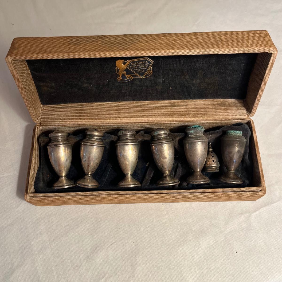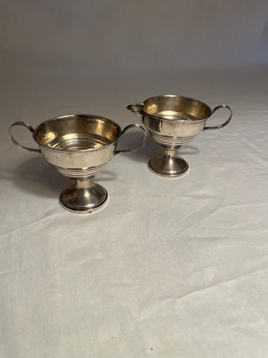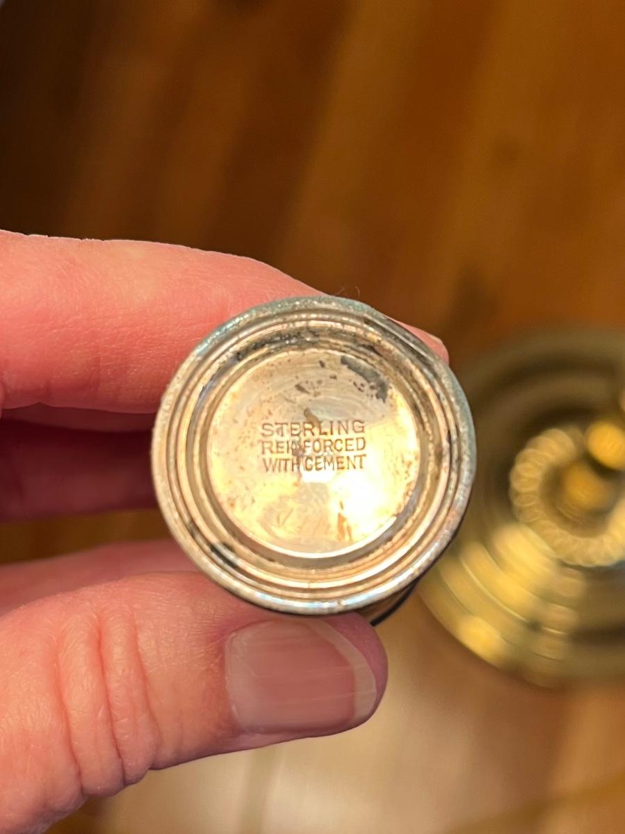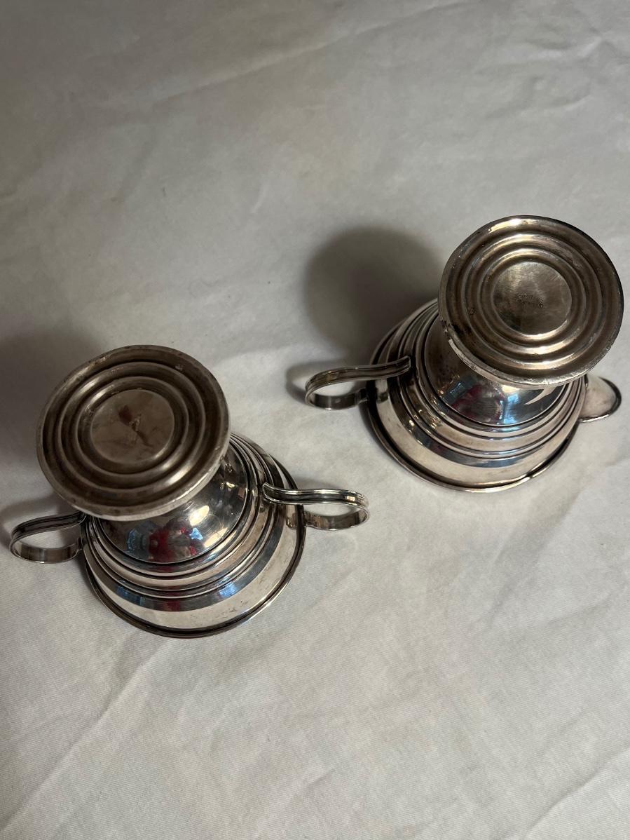 This lot has sterling candlesticks, salt and pepper shakers, a sugar and creamer set and a footed bowl. The tallest being the candlesticks at 3.5”D x 10.25H. All items show signs of wear.