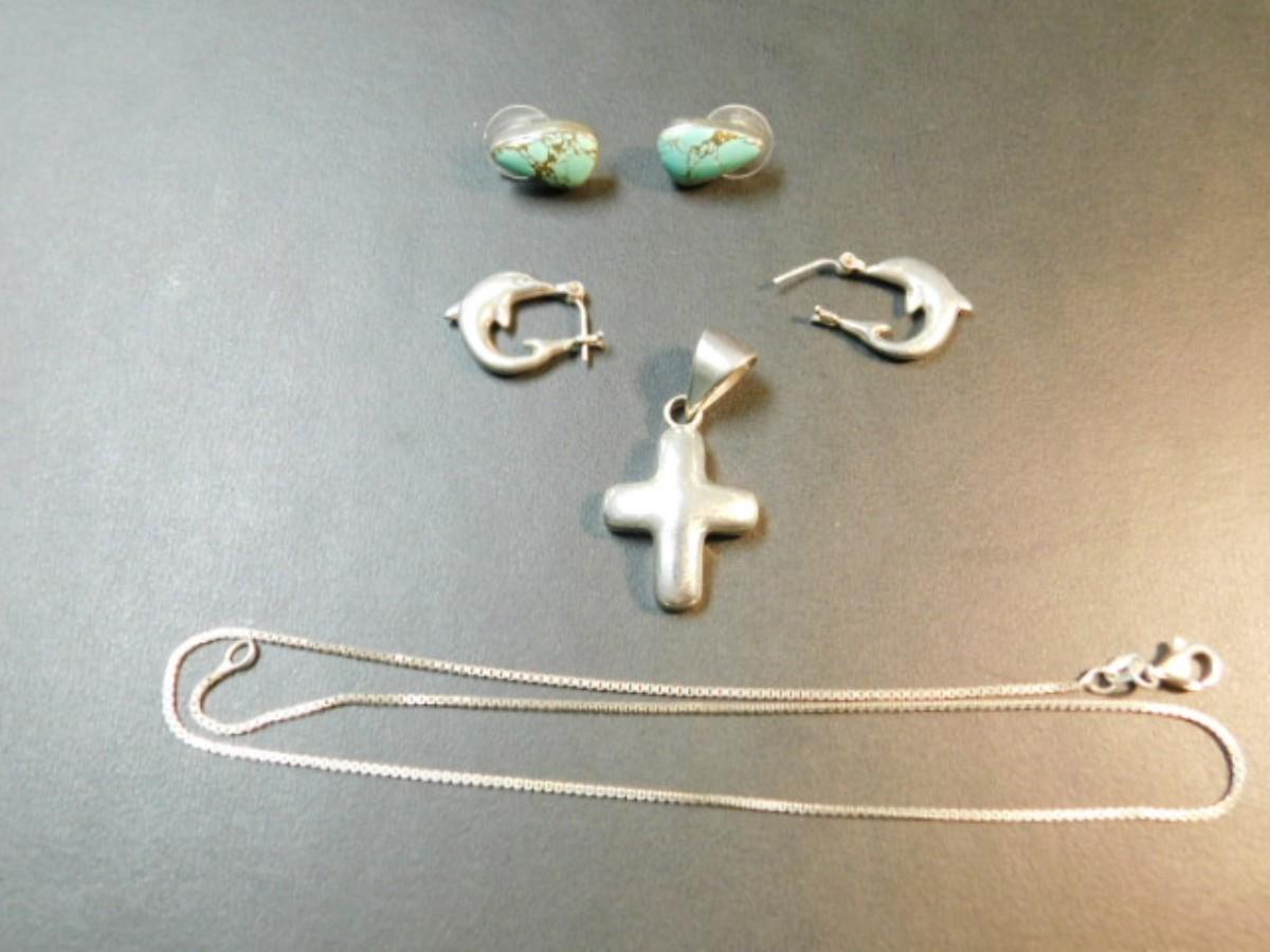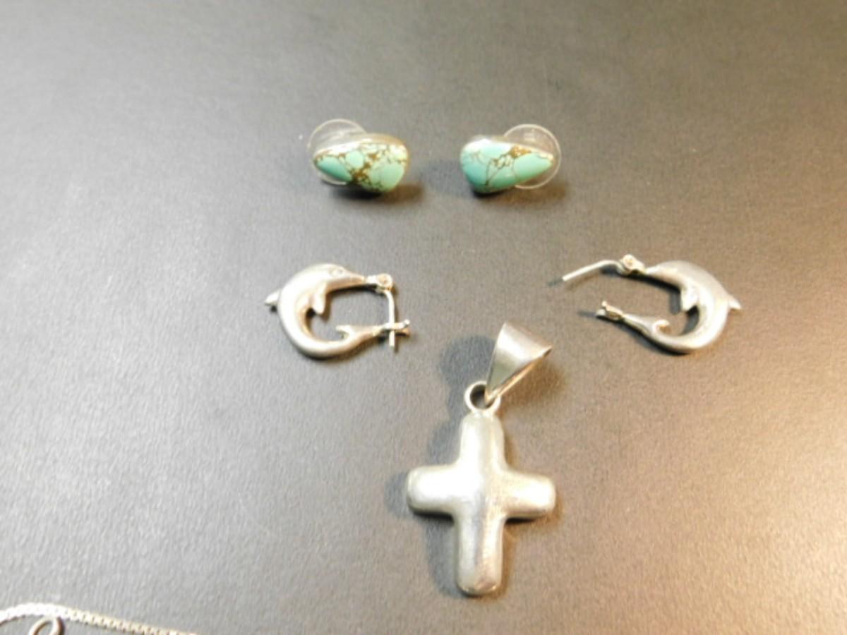 Collection of Sterling Silver .925 Necklace, Cross Pendant and Earrings