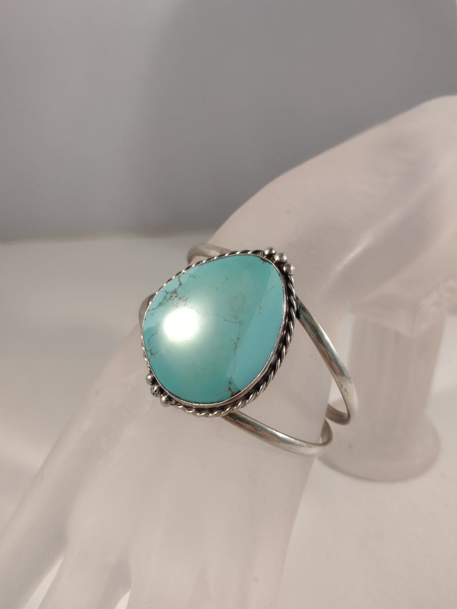 Collection of Sterling Silver and Turquoise Jewelry- Bracelet, Pendant, and Ring (#3)
