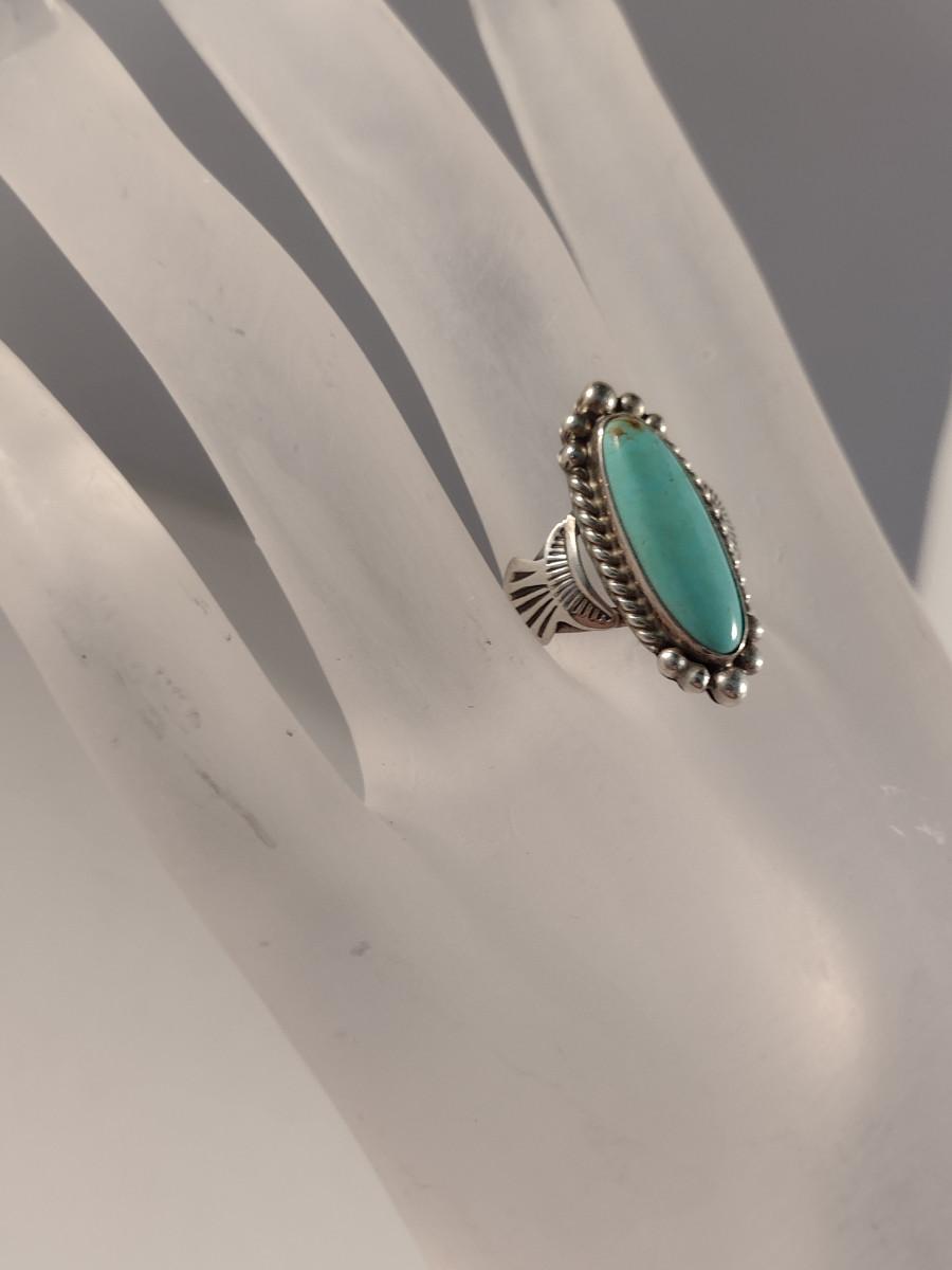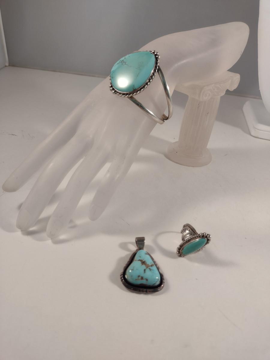 Collection of Sterling Silver and Turquoise Jewelry- Bracelet, Pendant, and Ring (#3). Ring size 7 3/4.