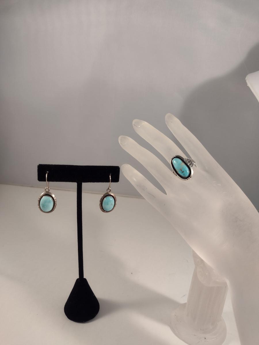 Collection of Sterling Silver and Turquoise Jewelry- Earrings and Ring (#4). Ring size 7.
