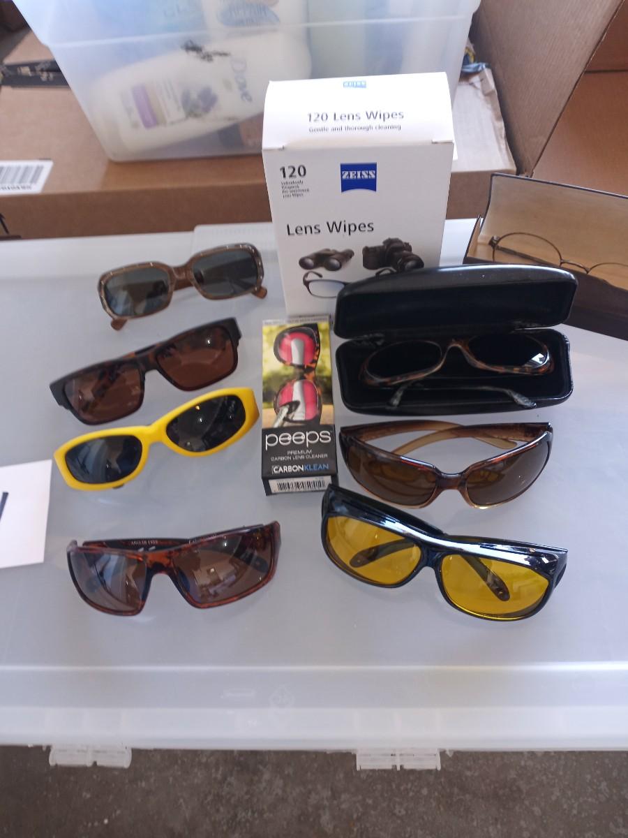 COLLECTION OF SUNGLASSES AND LENS WIPES