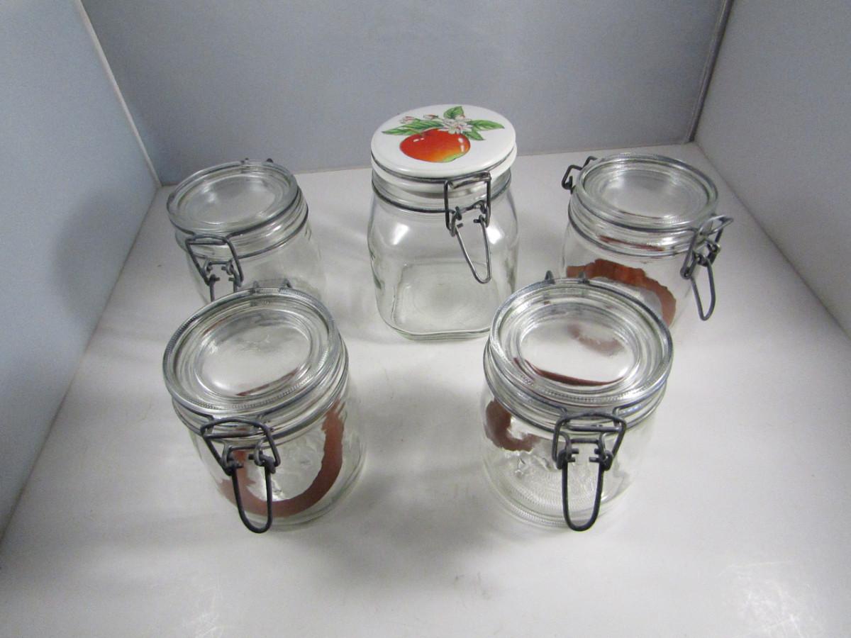 Collection of Swing Top Bale Top Storage Jars- Four 1/2 Liter Size, One 1 Liter Size