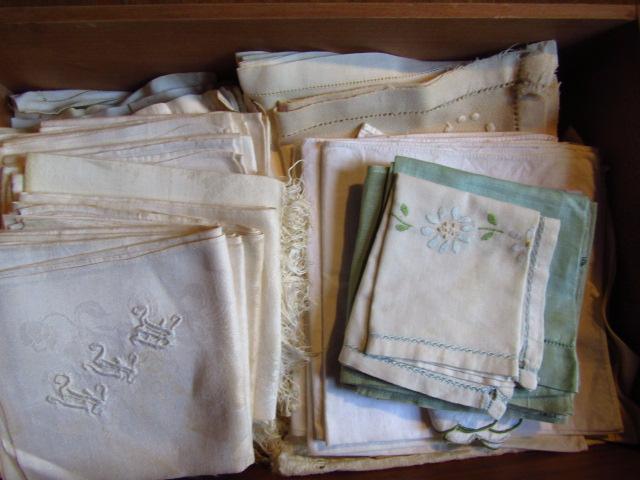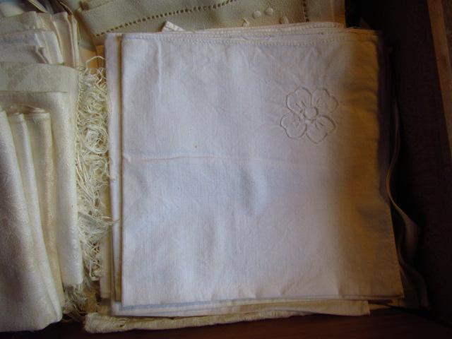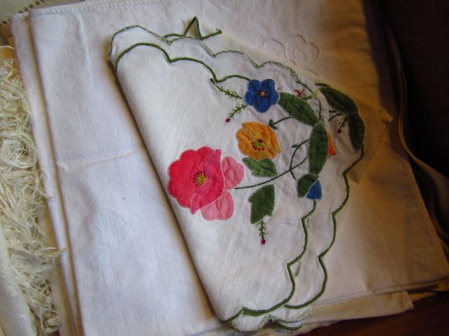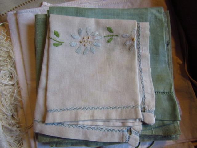Collection of Table Linens (Group #3). Includes embroidered napkins. Some items are discolored.