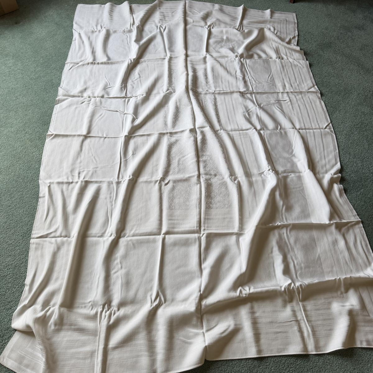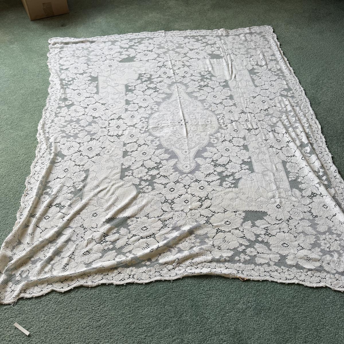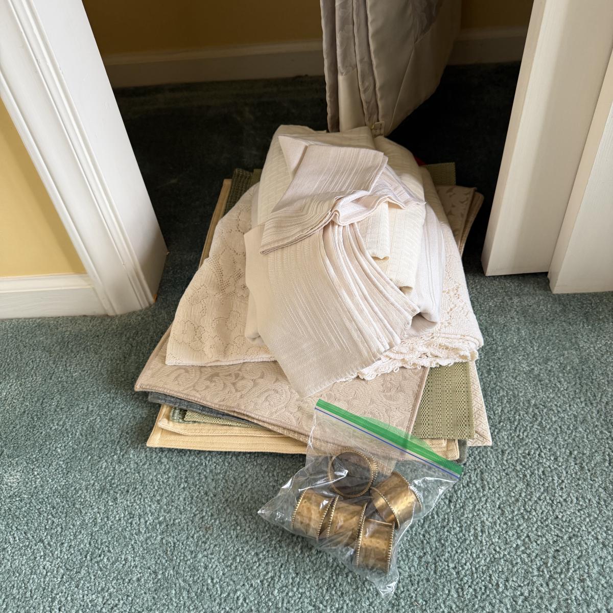 Lot includes a selection of cloth placemats, tablecloths and table runners. Largest tablecloth measures 68” x 102” with three others slightly smaller.