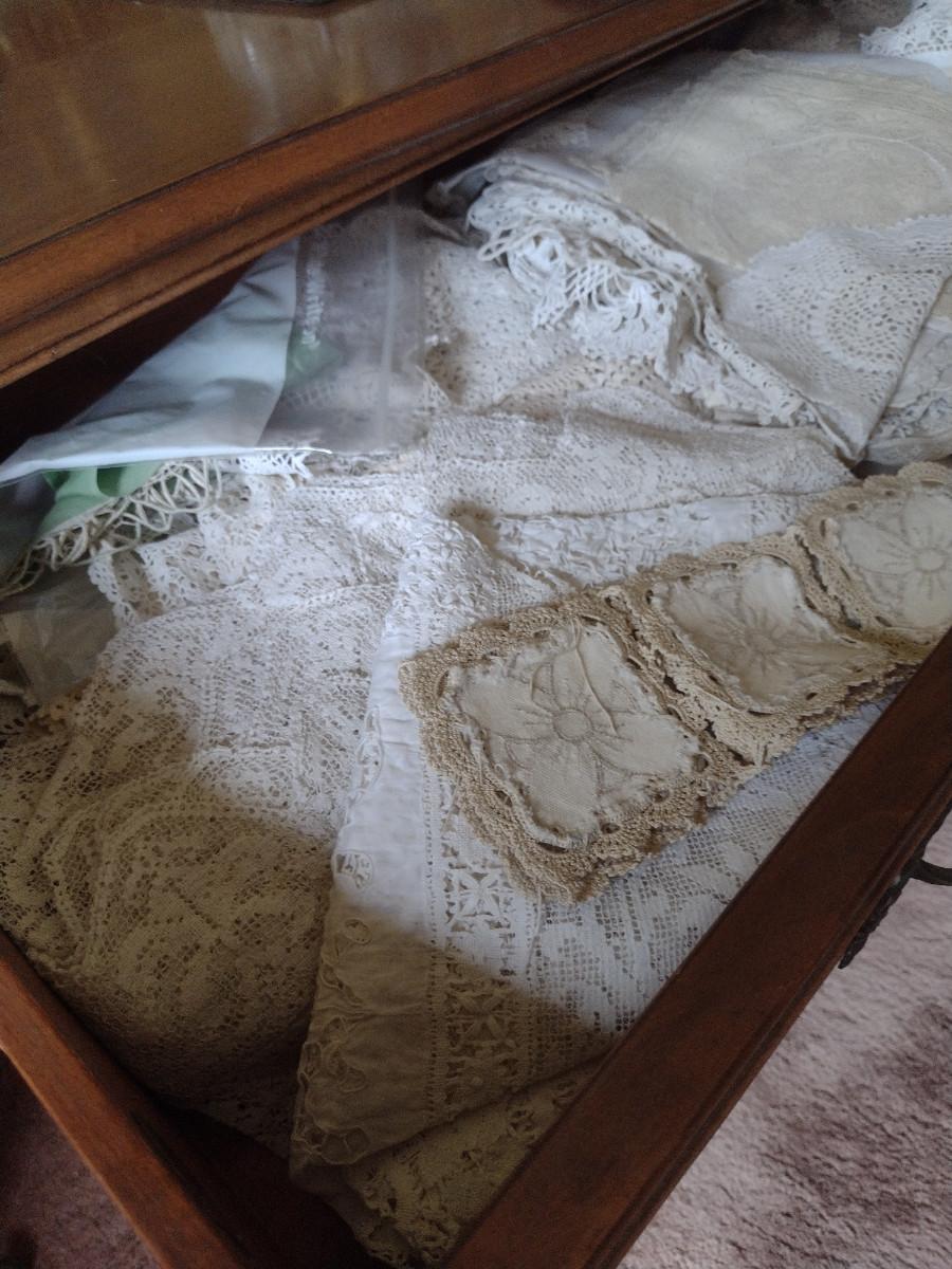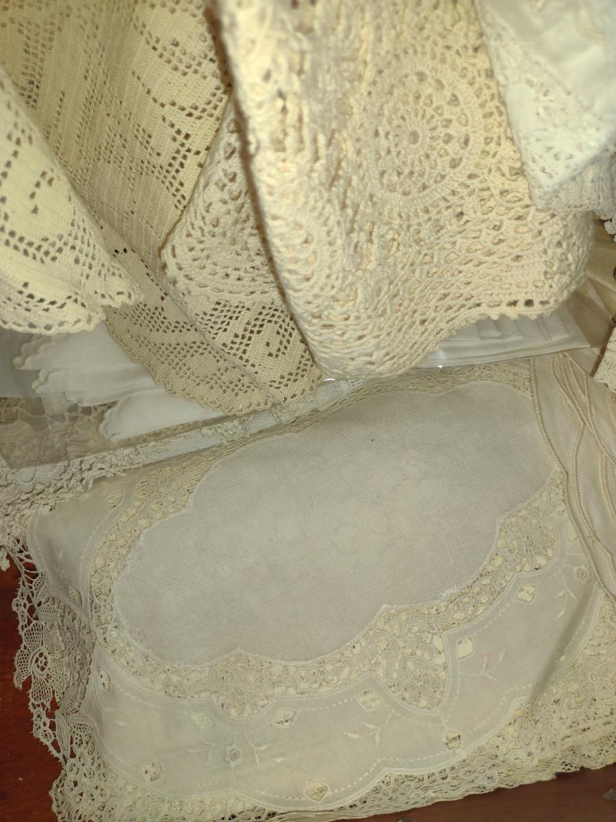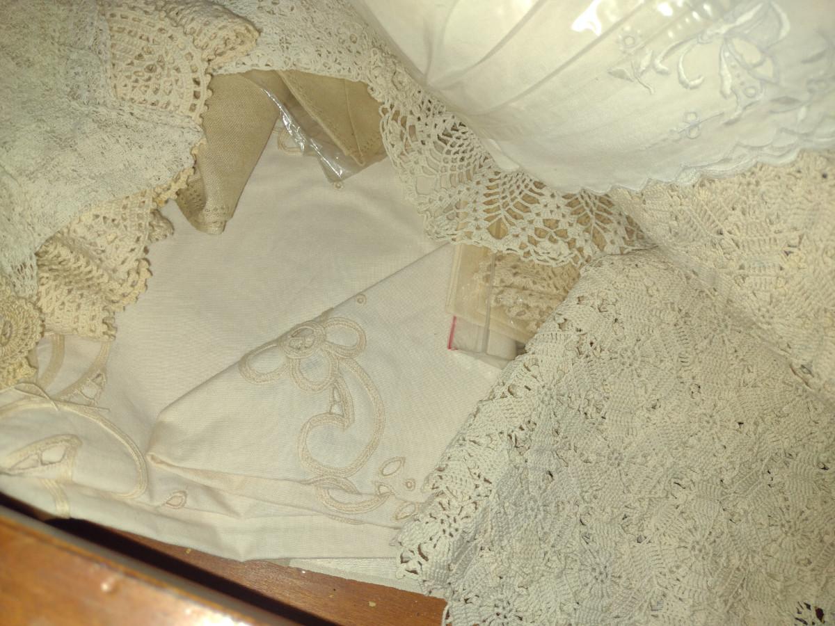 Collection of Tatted/Embroidered Table Linens- Runners, Doilies, Table Cloths, Napkins, etc