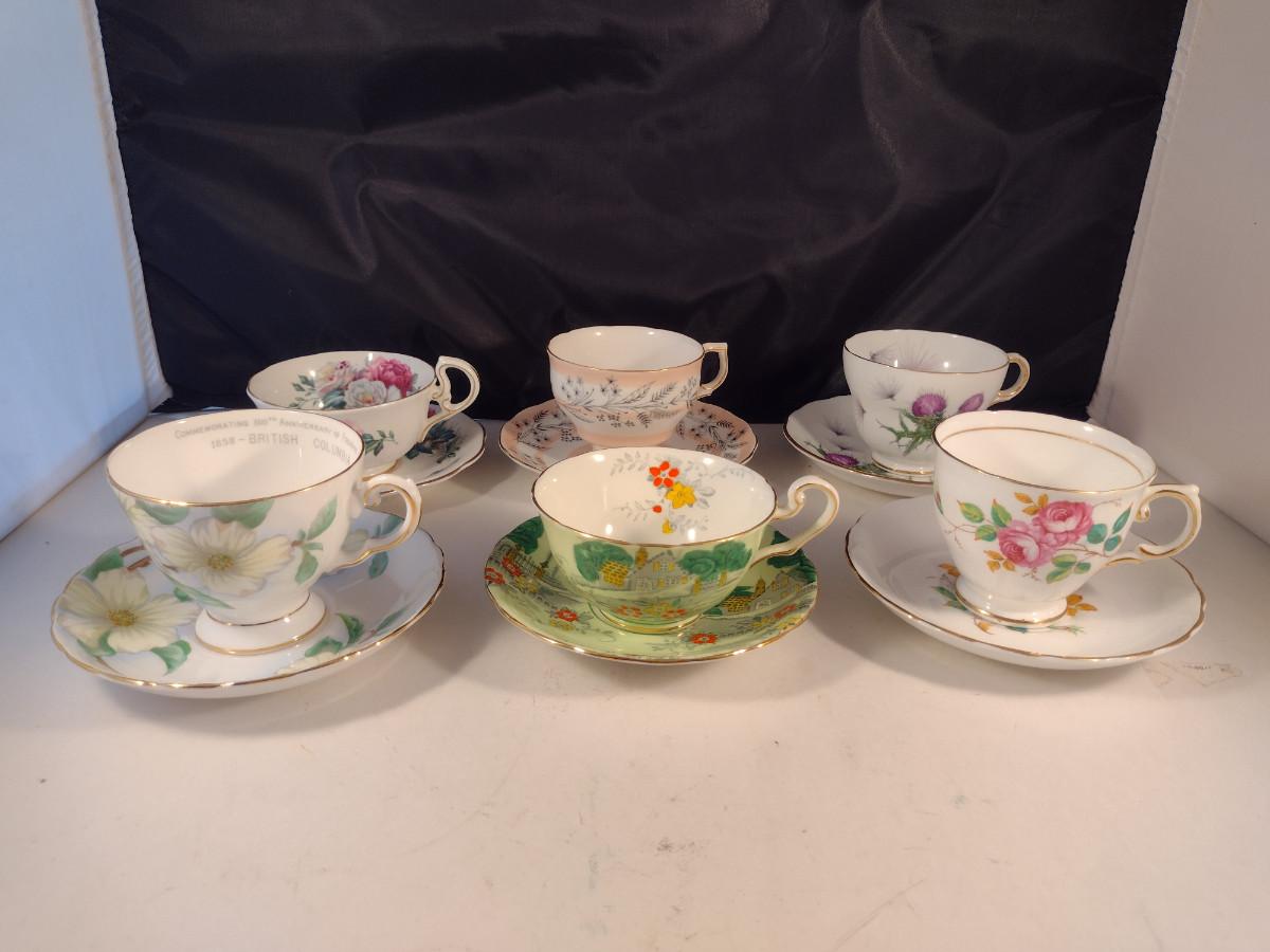 Collection of Tea Cups and Saucers- Assorted Makers- Six Pieces