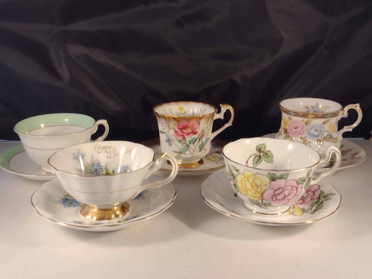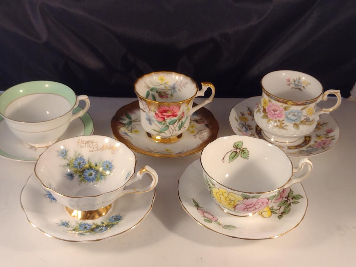 Collection of Tea Cups and Saucers- Assorted Makers- Five Pieces